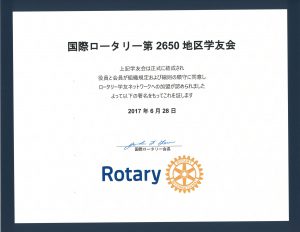 6月28日 RIより加盟認証状がガバナー事務所に到着