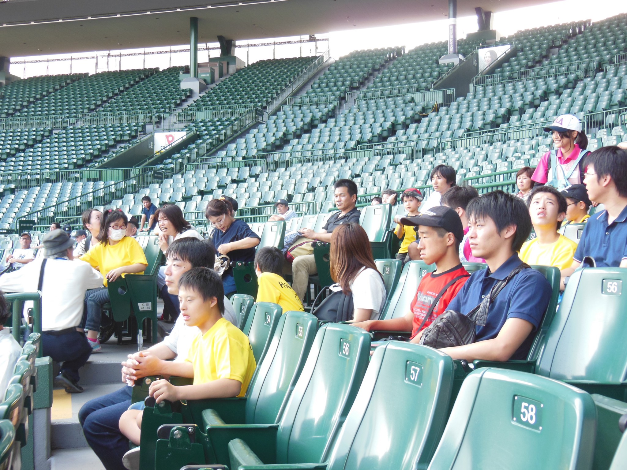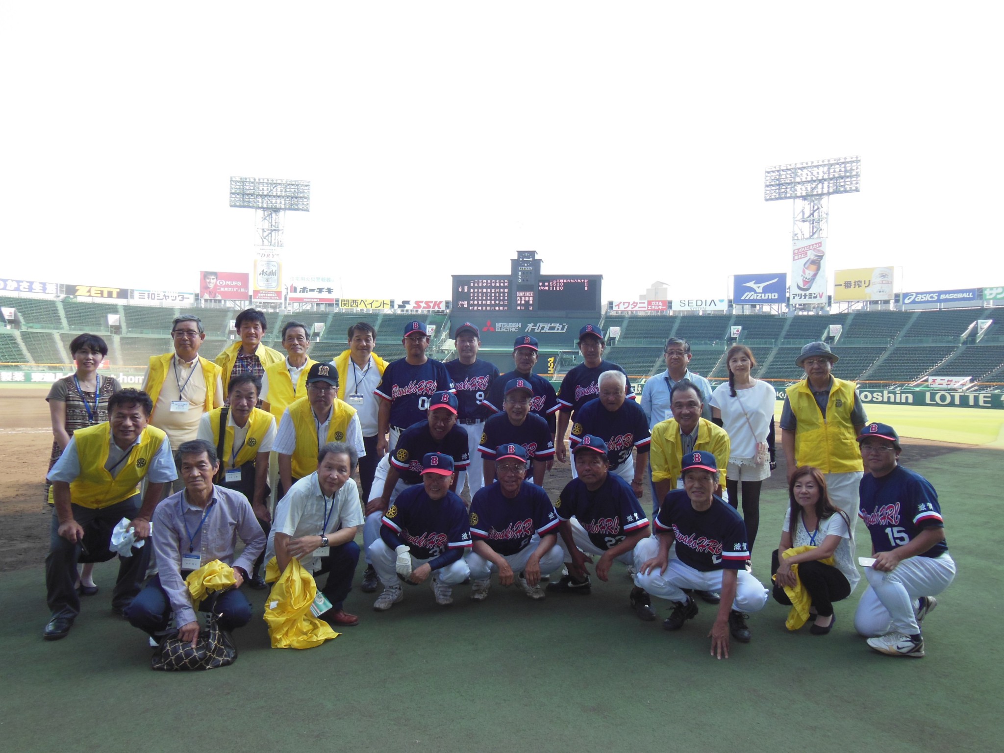 最後に訪れた阪神甲子園球場。まず甲子園歴史館では歴代の高校野球やプロ野球のユニフォームなどの陳列を見学し、その後は全国ロータリー野球大会が行われている球場に移動。バックネット裏観客席から選手たちの応援。子供たちは甲子園球場の広さに驚いていました。