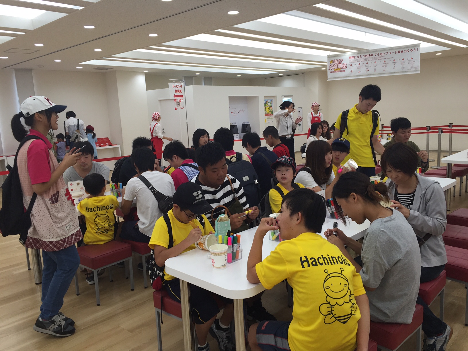 去る9月11日日曜日、朝8時30分大型バス2台に分かれて乗車しニューオウミを出発。まずは池田市のインスタントラーメン発明記念館を訪問、オリジナルカップ麺作りを体験。子供たちはボランティアのお兄さん、お姉さんたちと一緒にカップに思い思いの絵を描いた後、好きな具材を選び最後に記念館スタッフが機械で蓋をして完成。子供たちは自分で作ったカップ麺の出来栄えに大変満足していましたし、簡単な製造工程も理解することが出来たと思います。