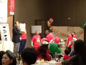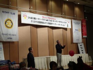 去る12月21日、「びわ湖八幡ロータリークラブ」と「びわ湖八幡フォローロータリーサテライトクラブ」初めてとなる合同クリスマス家族例会を開催。