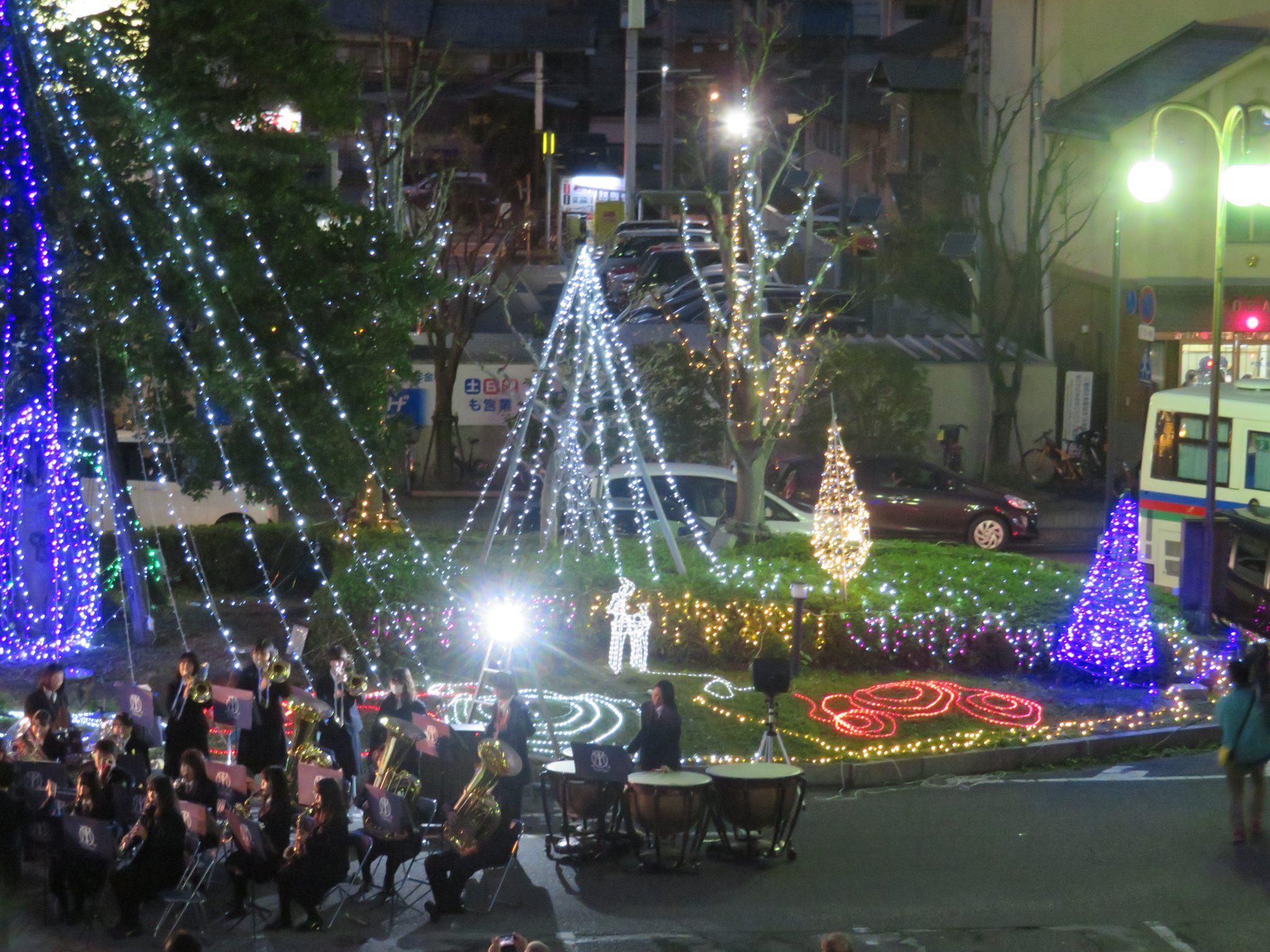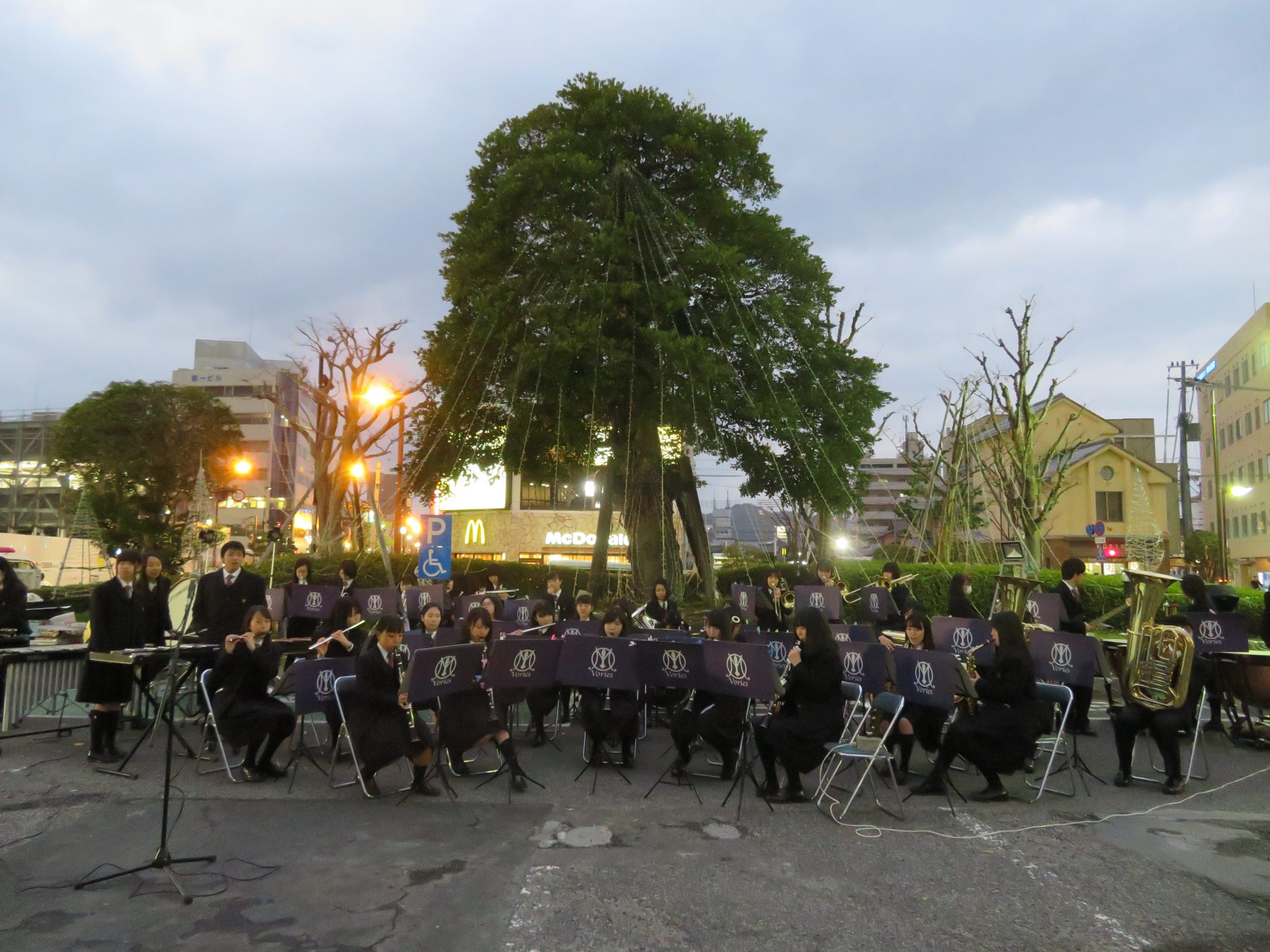 今年はヴォーリズ学園インターアクトクラブの企画・立案のもとに設営。12月1日午後5時より点灯式。近江兄弟社学園吹奏楽部にも花を添えて頂きました。