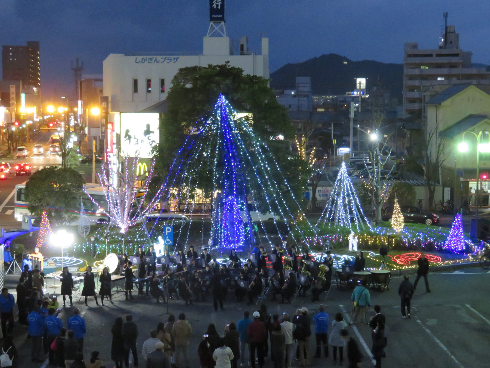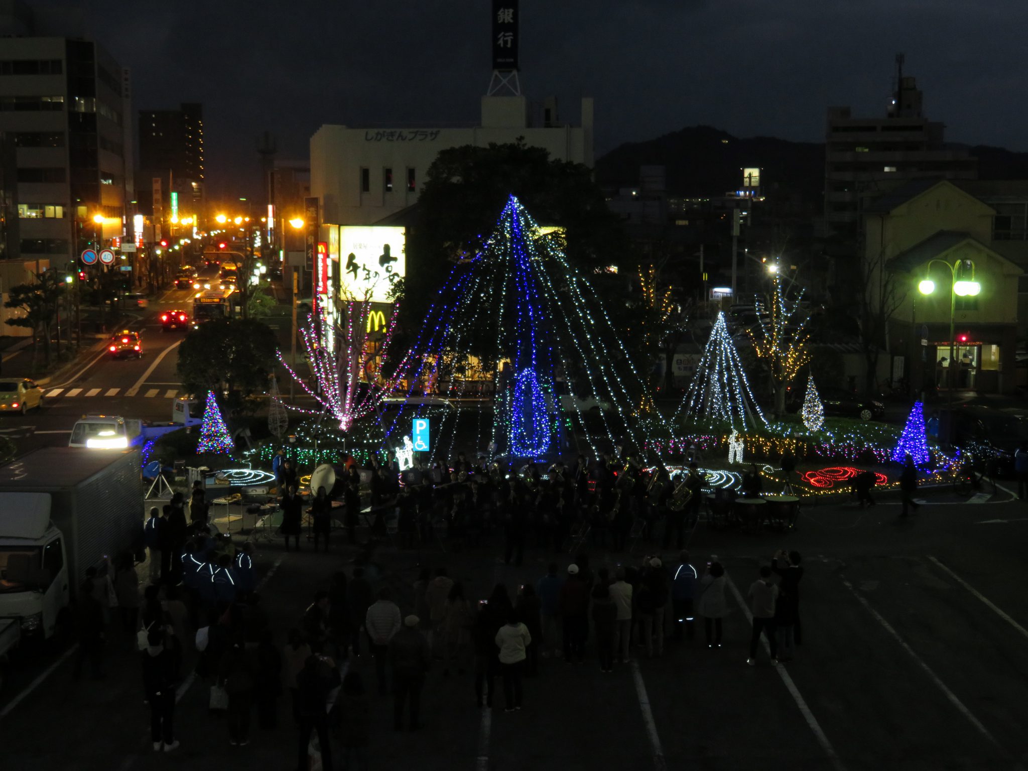只今、JR近江八幡駅北口広場にイルミネーションを設置しております。