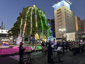今年度も近江八幡駅北口広場にイルミネーションを設置しました。