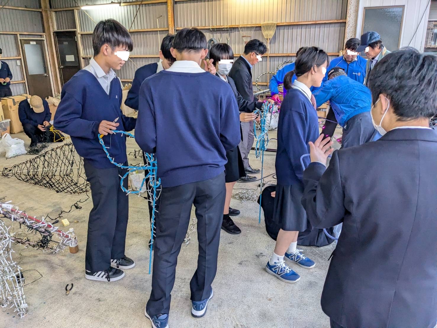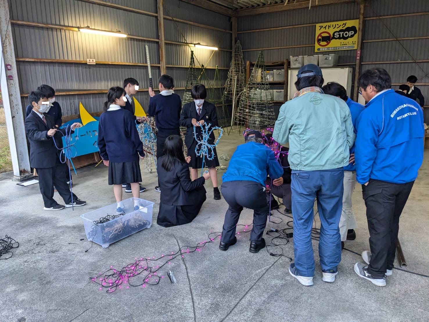 放課後等の時間を利用して、びわ湖八幡ロータリークラブの会員とともに制作に取り掛かりました。