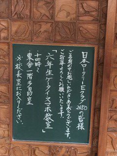 今回は、小学校側からの希望でどうしてもこの時期(夏休みに入る前)に開催してほしいとの依頼がありました。堀江会員が講師を務めるなか生徒小6年生99名 保護者4名、 先生3名、日本ロータリーEクラブ2650より、守金会長、古川正儀(京都)金野正敬(千葉)小山貴美夫(三重)と地元岐阜から、堀江大典、堀口次郎、江口成美、大橋正和、大塚裕雅 計9名の会員のよって開催されました。