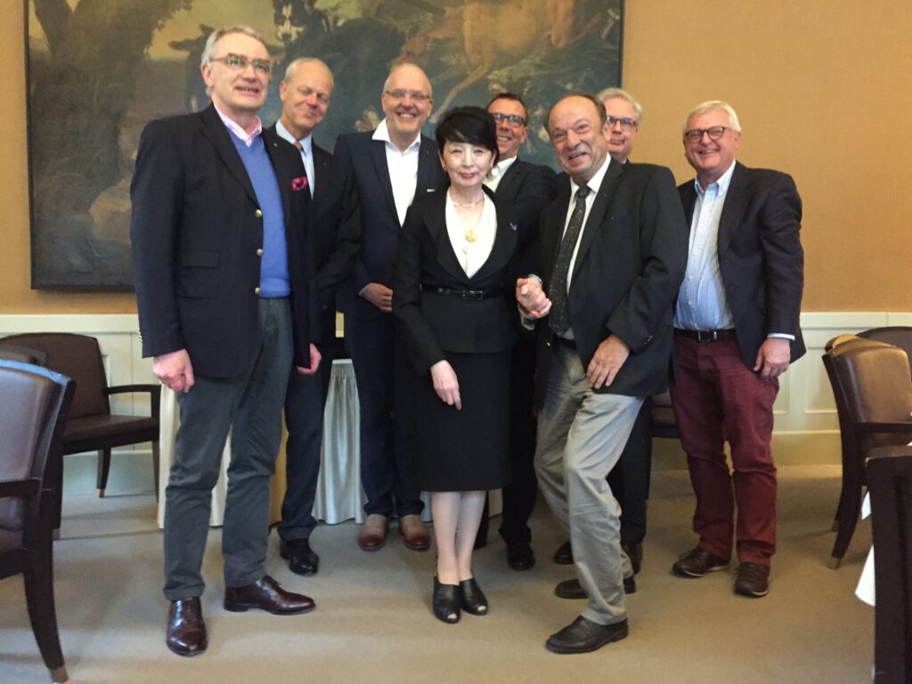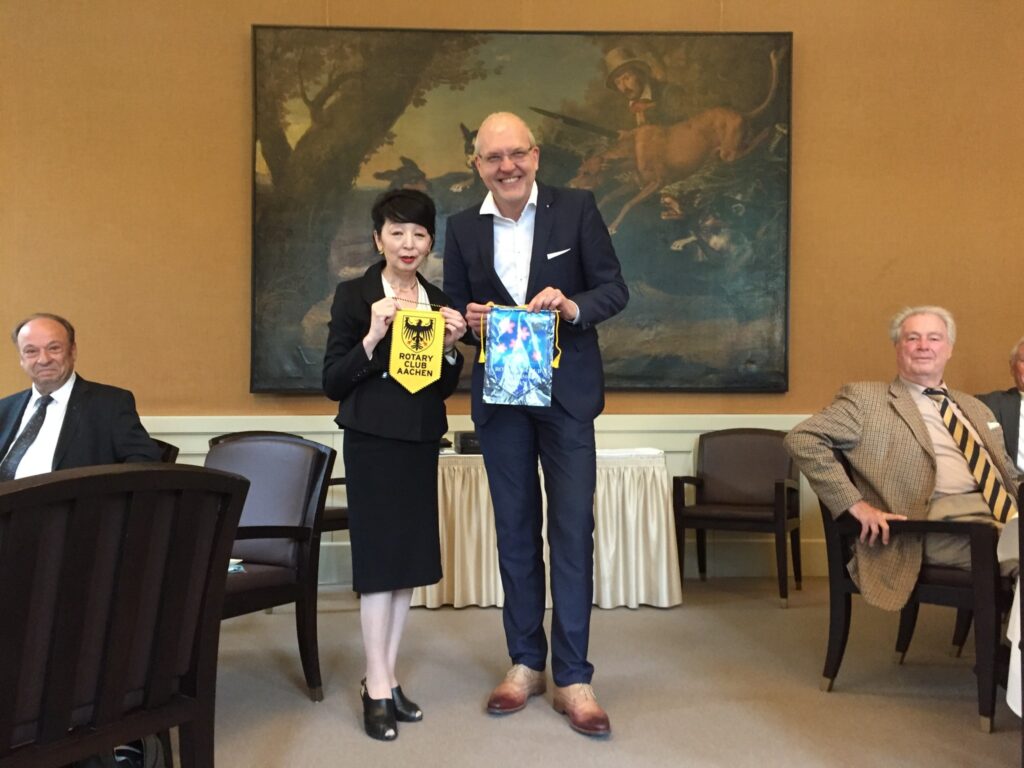 国際奉仕委員会より河地妙美委員が5月23日、ドイツアーヘンRC例会に出席し、バナー交換を行いました。