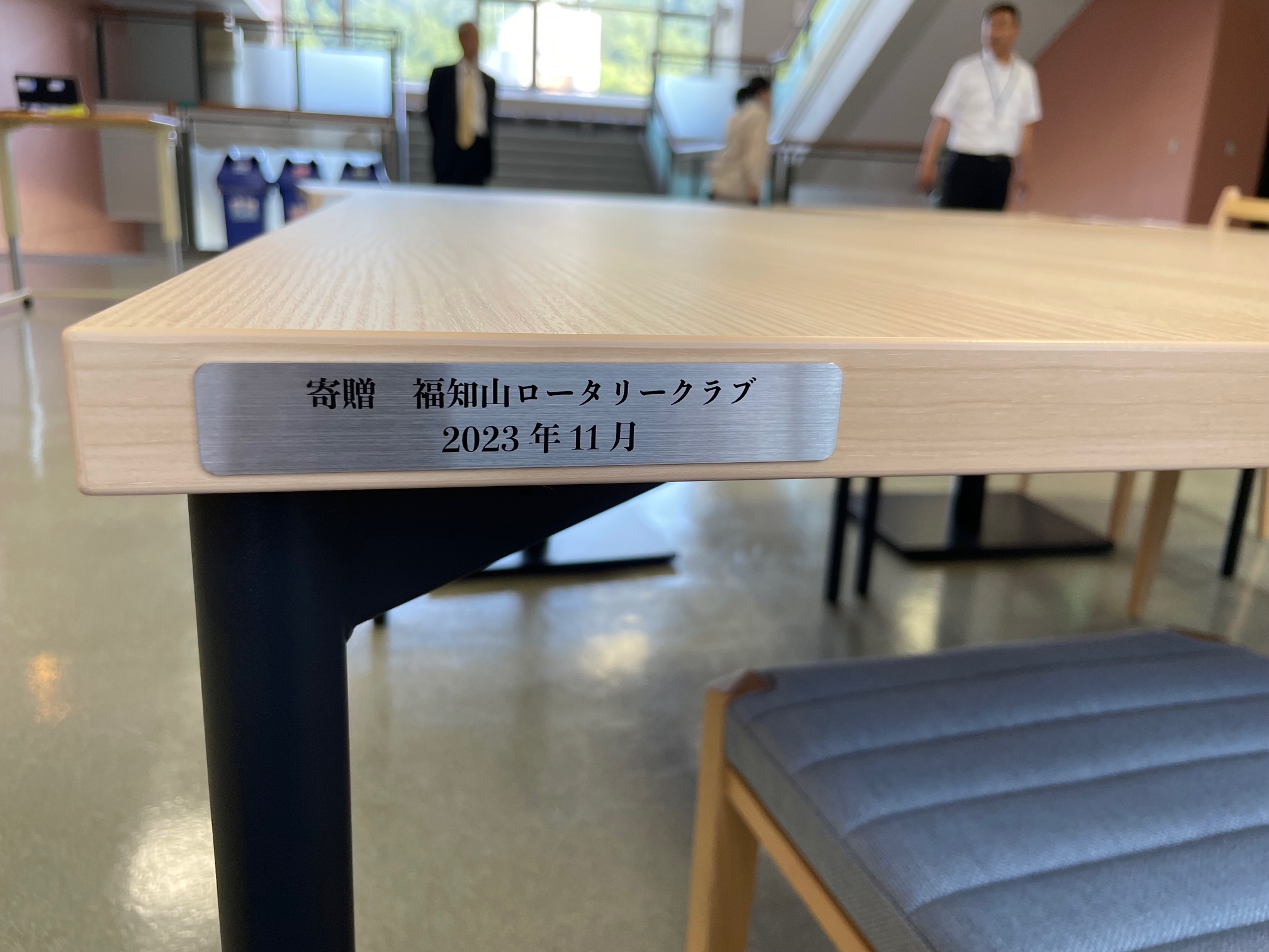 持続可能な地域社会づくりの一環として、福知山RCと福知山公立大学(地域経済学部)との連携事業で「新世代のための会議」を6年間実施して参りました。今年度は更なる連携発展の為、ロータリー財団補助金を活用させていただき、学生と会員が地域社会の未来への希望を語り合える交流スペースの場また、24時間使用可能な勉強スペース、学生同士の交流の場として2023年11月2日に福知山公立大学4号館4階に新たな什器を寄贈させていただきました。