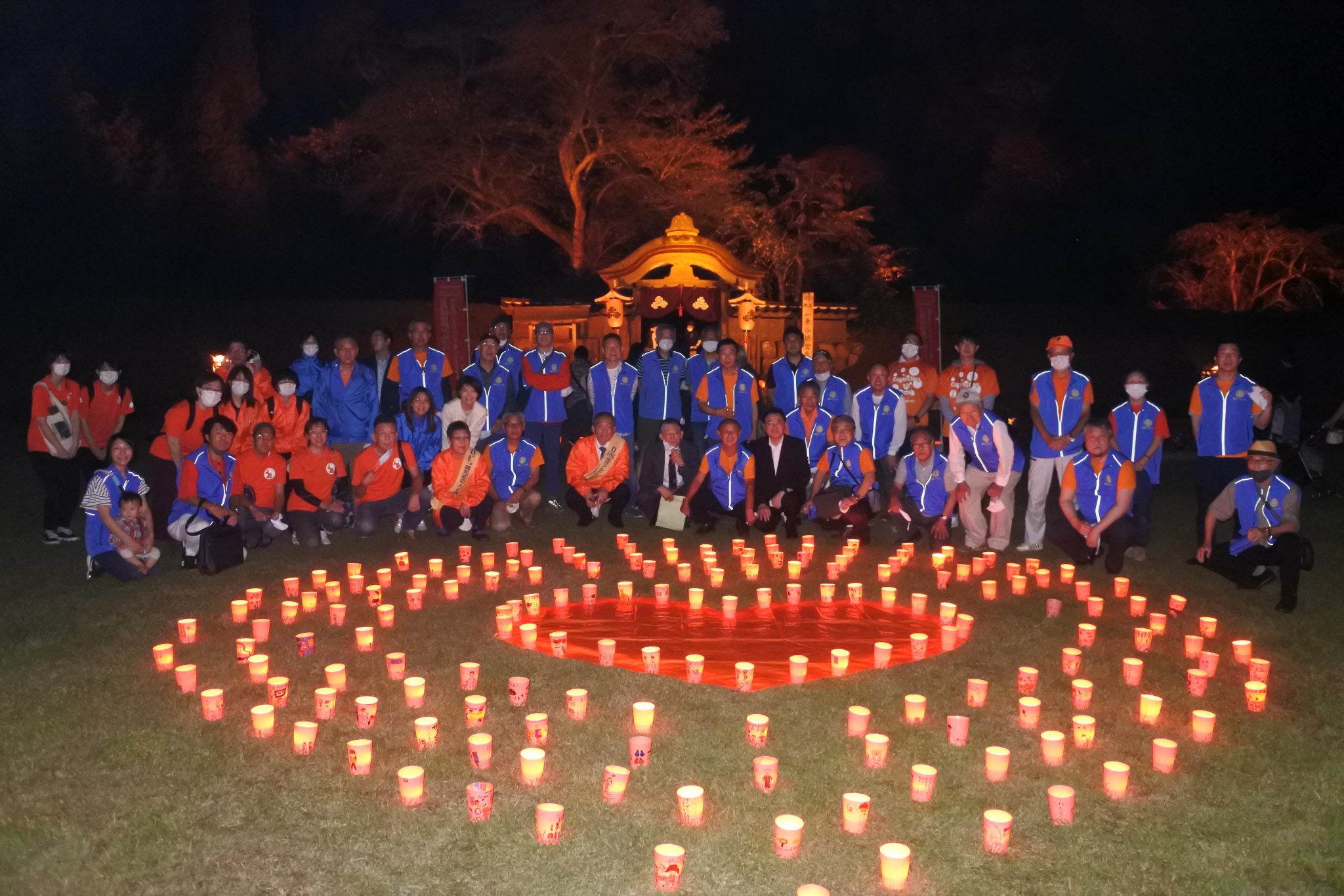 福井東ローターアクトクラブと共に朝倉氏遺跡の環境整備清掃作業、一乗谷川の保全活動を行ったあと、9月21日の世界アルツハイマーデーに合わせて、福井県内において重要な遺跡である朝倉氏遺跡の唐門を認知症のイメージカラーのオレンジ色にライトアップし、認知症の啓発活動を行いました。また、会場に燈籠を灯し、コロナ対策で緊張する医療・介護関係者や県民の皆様が元気になればとの思いを込めました。