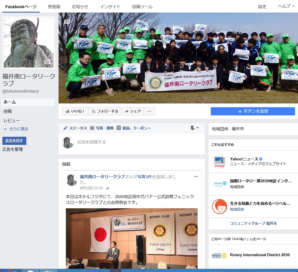 ・フェイスブックから「福井南ロータリークラブ」を検索。