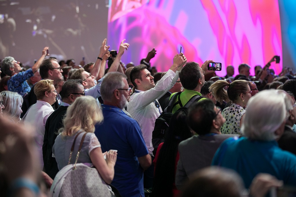 前回は、4年前のブラジル・サンパウロ大会 国際奉仕委員長であったこともあり、どうしても国際大会に出席したい、本会議に参加して国際交流を深めたいとの思いが強く、開場と同時に会場を訪れ真面目に体験しました。しかし、2度目の今回一般参加ということもあり軽い気持ちでの参加でした。中川ガバナーとの夕食会も、事前の予約が必要であることを事務局の辻本さんに伺うまで知らず、大きなミスをしてしまいました。案内のパンフレットに、フェローシップの浦島委員長の連絡先が書いてあったので、娘が連絡して顔だけでも出してとの許しを得た。大きなミッションのクリアができ、ホットした。