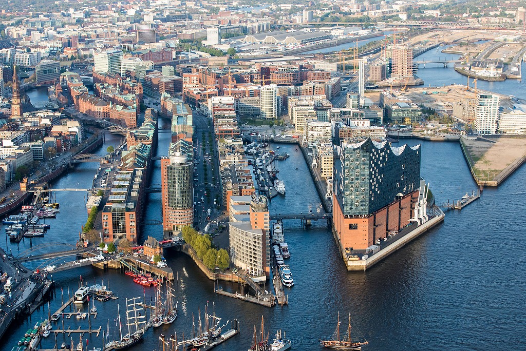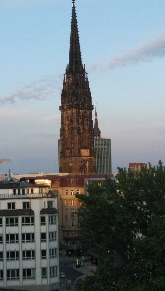 関空から8時間45分、トランジットのためヘルシンキ空港で3時間、ハンブルグまで飛行時間が約2時間、時差が今の時期は、サマータイムで7時間。ホテルの部屋に荷物を入れ、タクシーでシュタイゲンベルガーホテル(8階)に向かう。