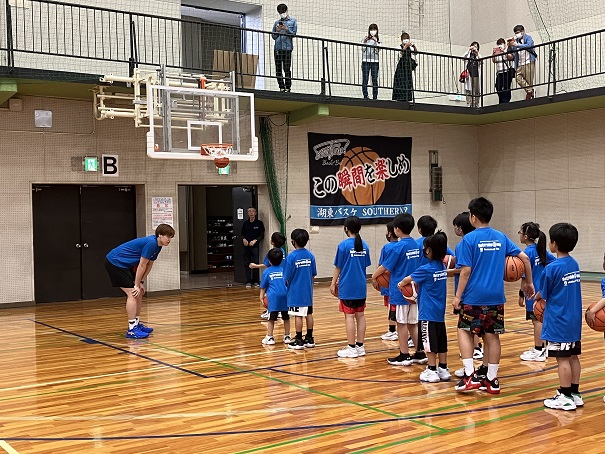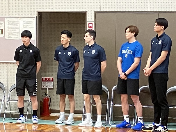 午前は滋賀レイクスの湧川選手、星野選手、ダビーゴメスヘッドコーチによるバスケットボール大会。