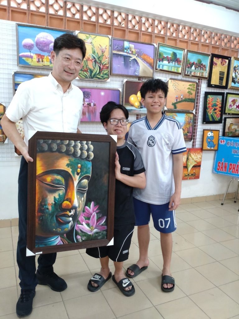 二件目はホーチミン市の聴覚障害者・知的障害者の職業訓練施設を訪問し、プリンターや日用品を寄付しました。