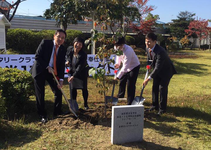 最後に正門のすぐそばに創立110周年の記念植樹として「ハナミズキ」を植えさせていただきました。