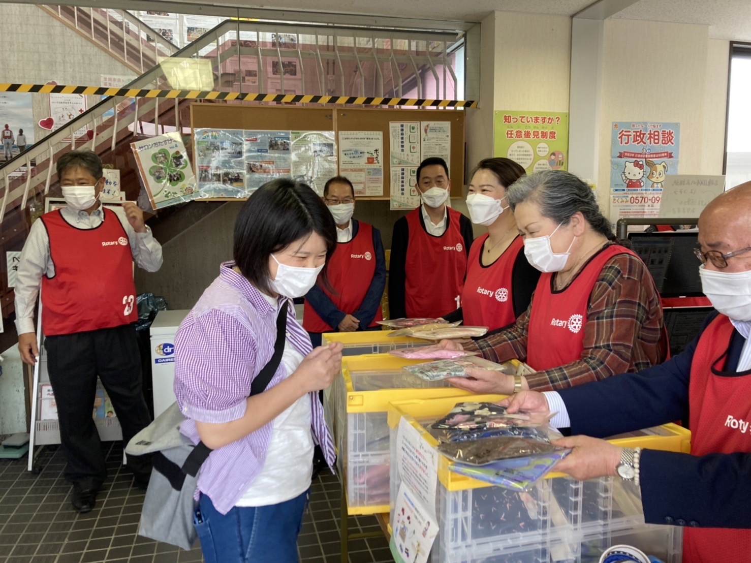 後日、寄贈物販のお披露目としてロータリーメンバーと米山奨学生のウニルさんと