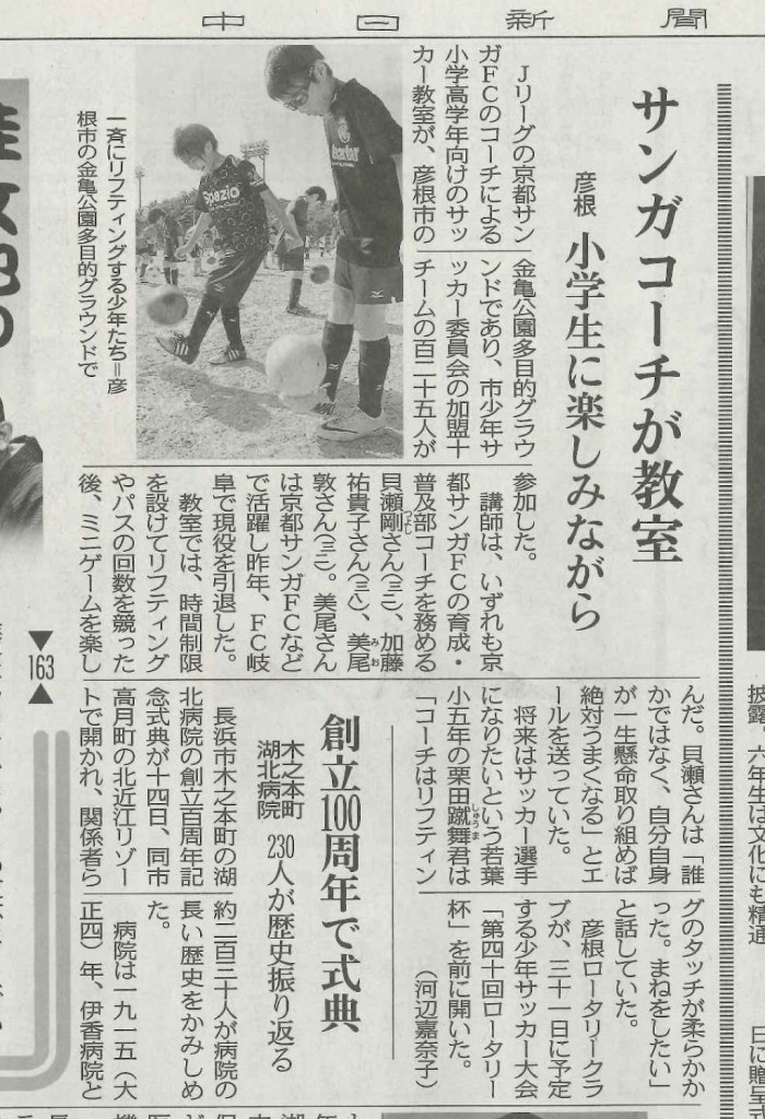 京都サンガF.Cコーチによる少年サッカー教室開催