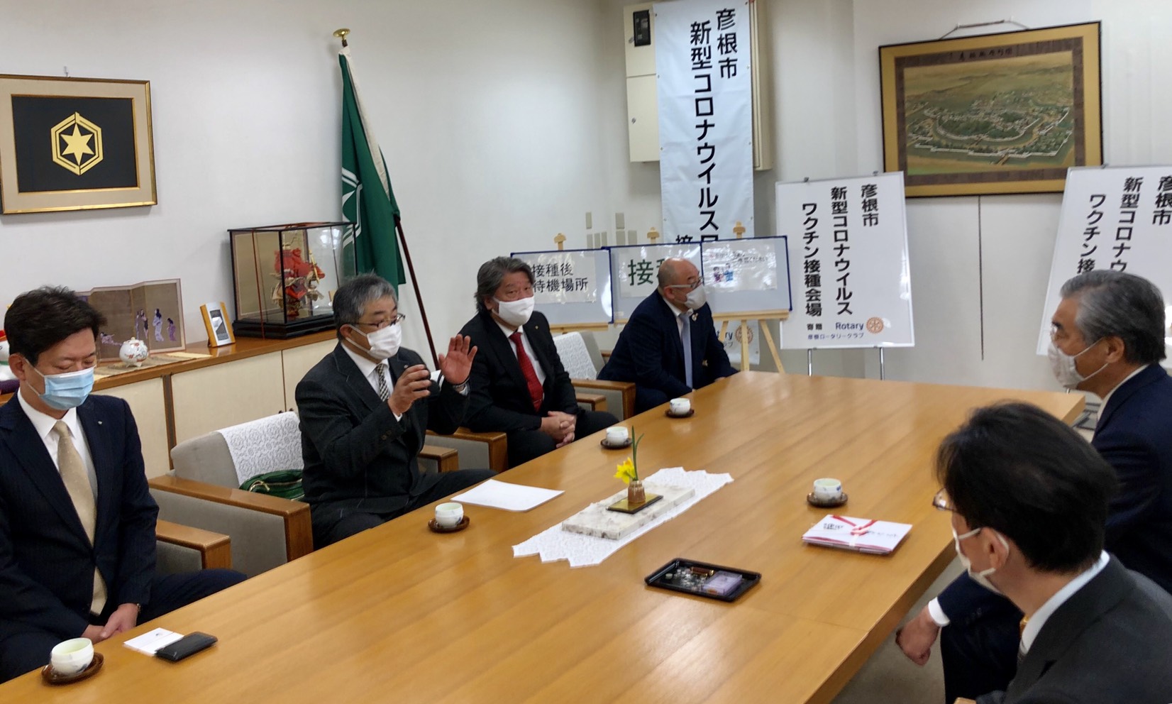 彦根市へ新型コロナウイルスワクチン接種標識寄贈