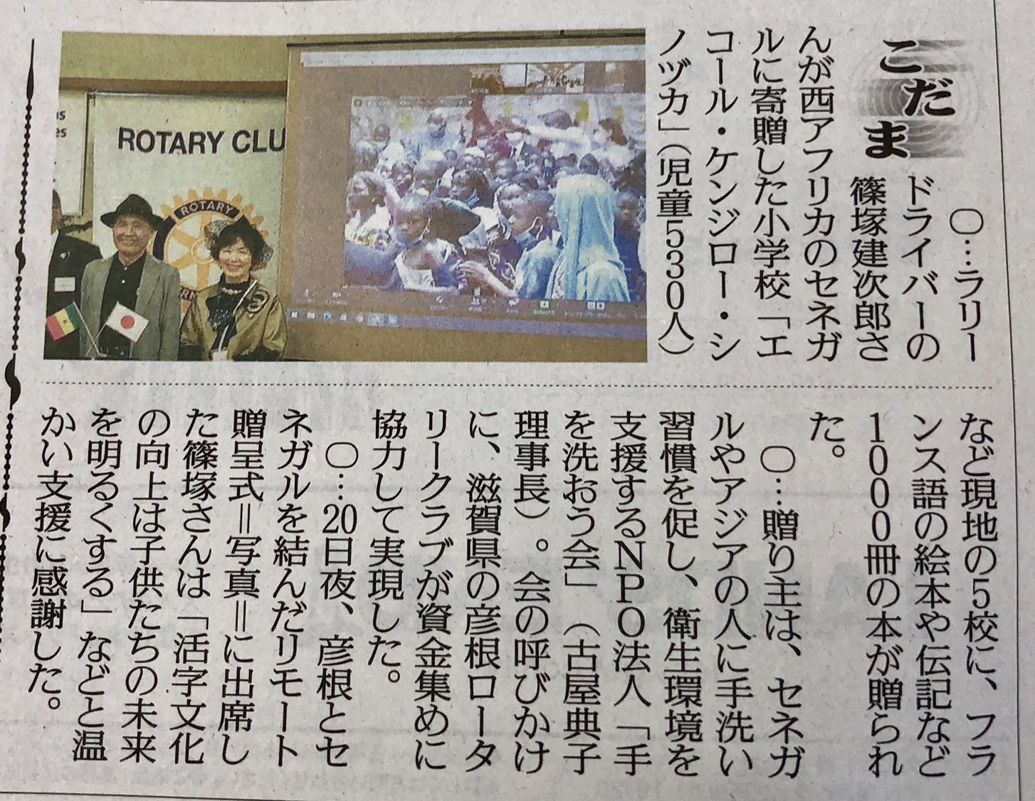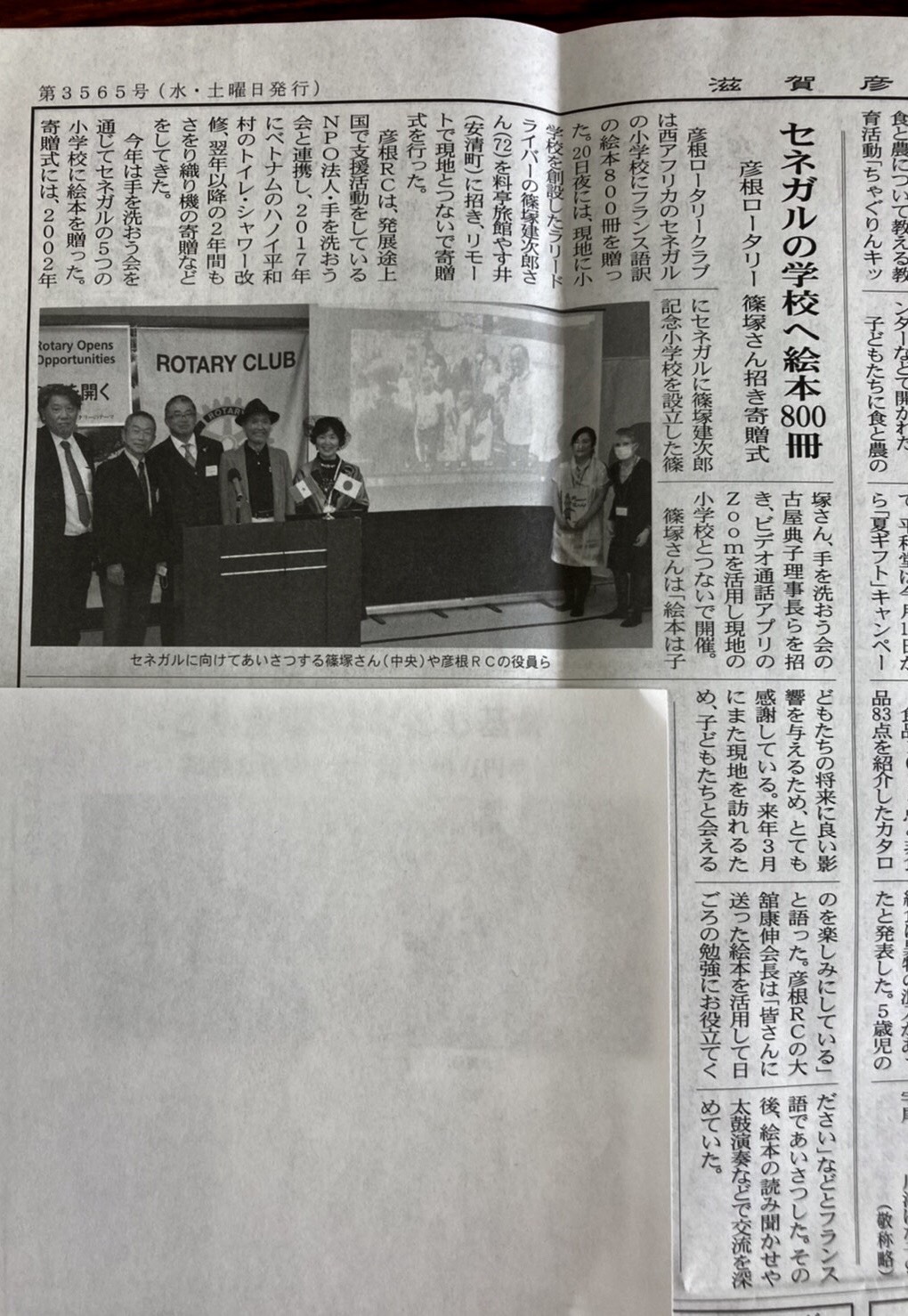 「一隅を照らすプロジェクト」についてセネガル篠塚建次郎小学校との絵本寄贈式に担当理事・委員長の主たる方々のご尽力により、現地と彦根14,000キロ時間差9時間をオンラインで結び執り行いました