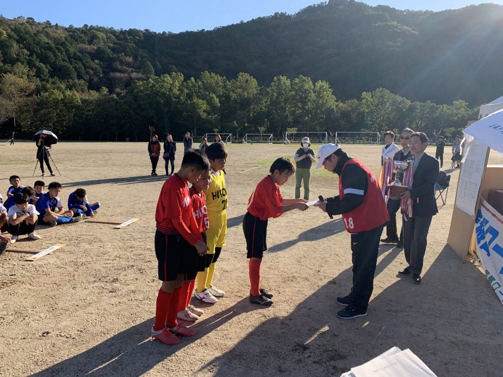 11月2日(土) 8時30分より16時まで荒神山グランドで第44回ロータリー杯少年サッカー大会を行いました。本年は、晴天の中、9チーム115名の参加で行い、優勝は、彦根フットボールクラブ、準優勝は豊栄クラブジュニア、3位はプライマリーサッカークラブ、敢闘賞は旭森スポーツ少年団サッカー部が栄誉に輝きました。