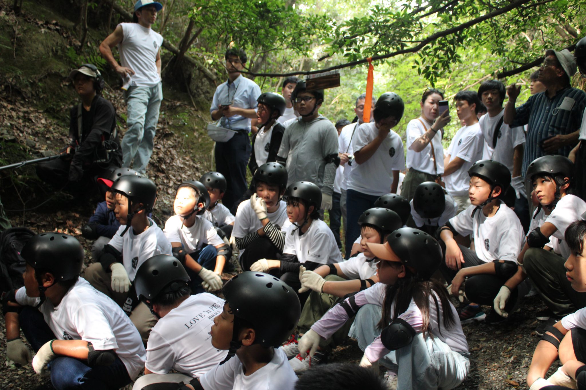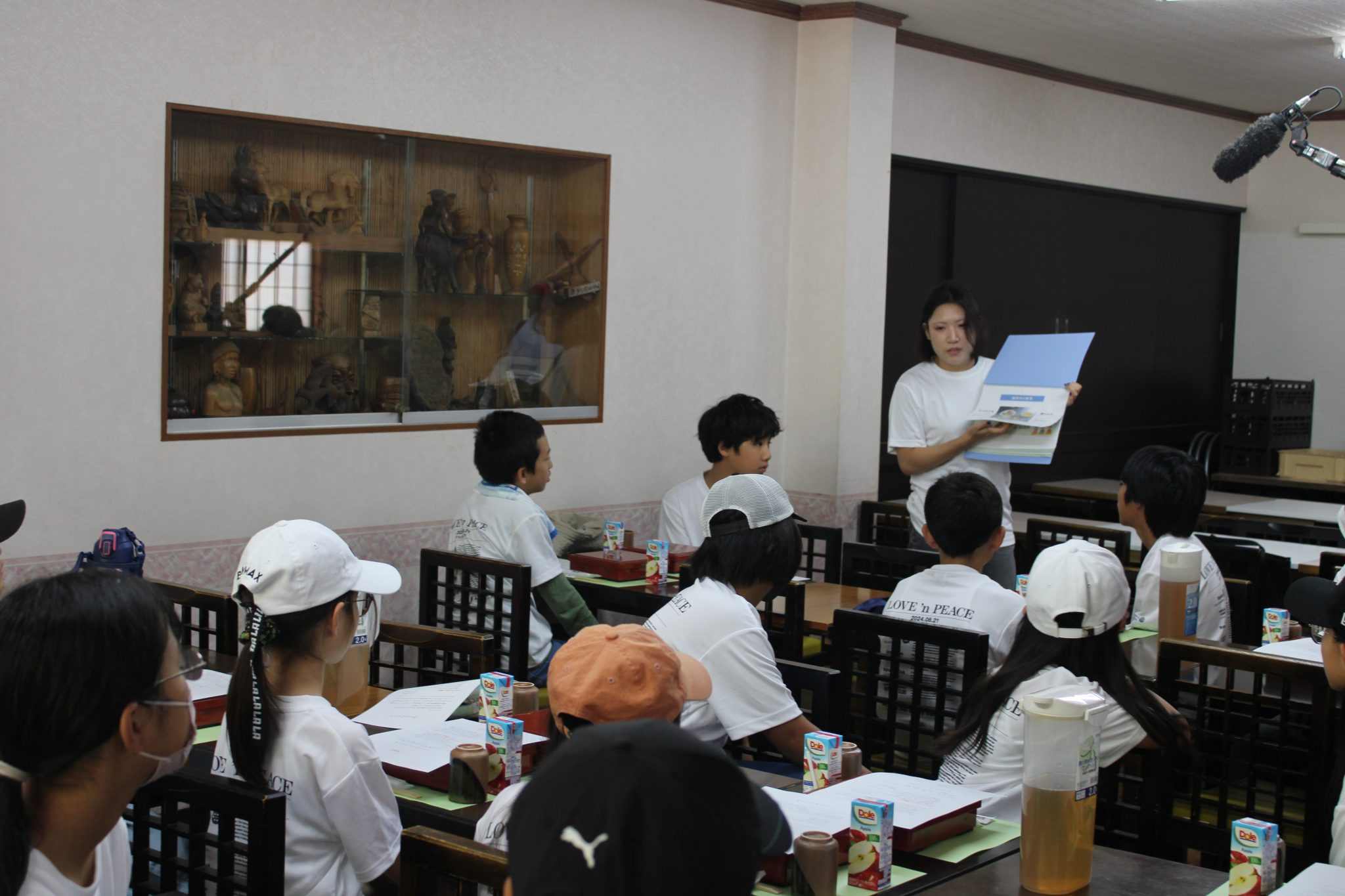 小学生4年生~6年生を対象とした、地元奈良県内の戦争遺跡を訪ねる平和学習事業を行いました。天理市の柳本飛行場跡や香芝市にある地下壕「屯鶴峯」、航空自衛隊奈良基地をバスで巡りました。柳本飛行場跡や屯鶴峯では、子供たちが実際にその地へ足を運び、現地を見ながら地元のガイドの方から遺跡の詳細や建設に至った経緯などをご説明頂き、また昼食には戦時中の食事体験として、当時よく食べられていた「すいとん」を実際に食べることで、当時の状況の過酷さ、不自由さなどを肌で感じることができたと考えています。