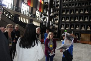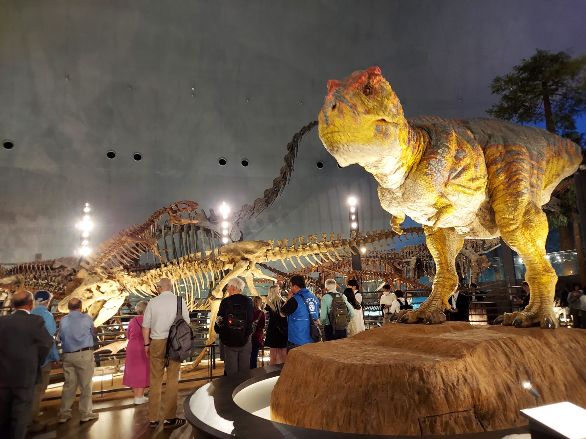 福井県立恐竜博物館で歓迎セレモニーをし、ブラキロフォサウルスのミイラ化石など説明を受けながら館内を見学しました。