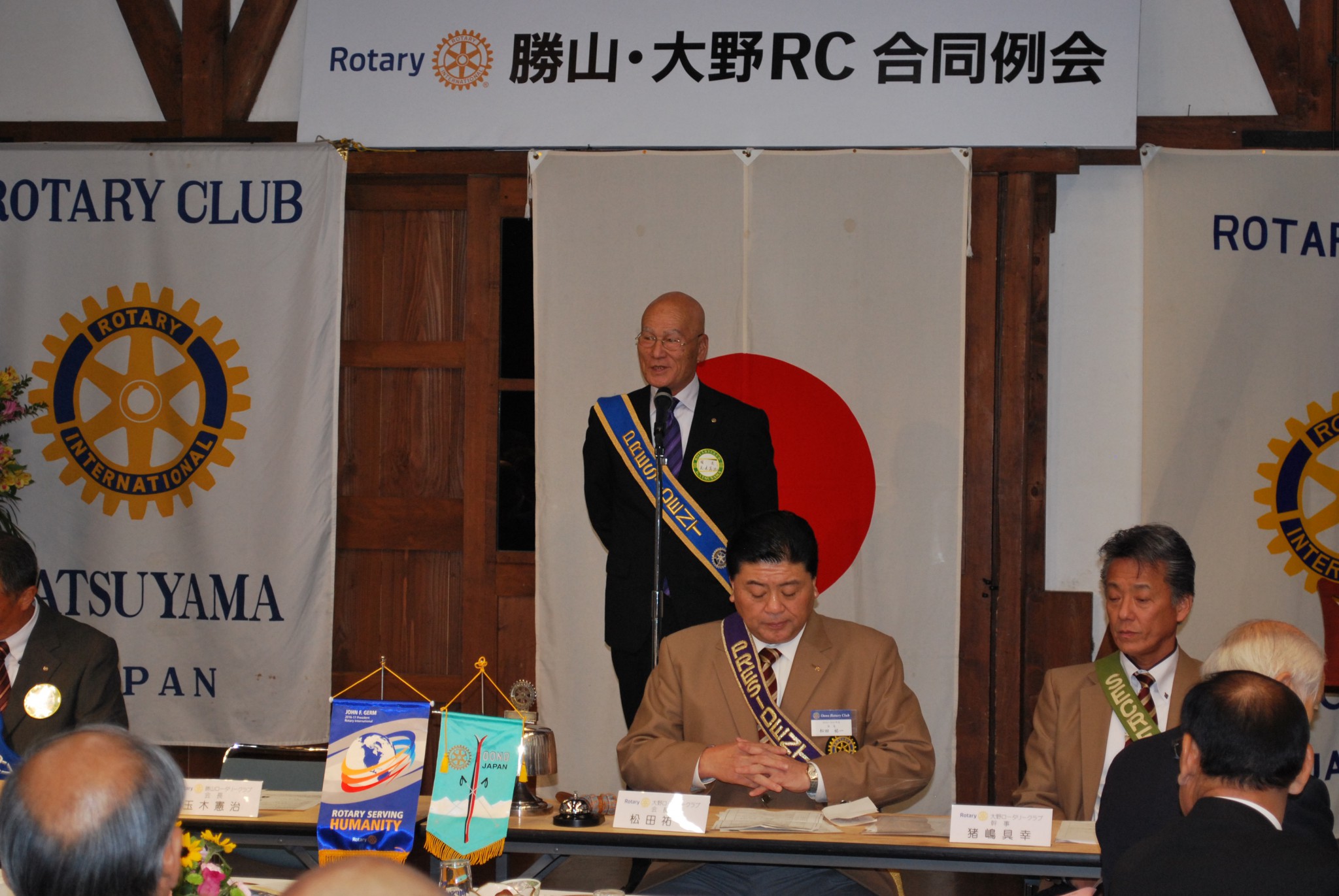 まず、大野ロータリークラブ松田会長開会点鐘、「肩を寄せ合って大いに親睦を深めていただける合同例会となりますように」との歓迎のスピーチに続き、勝山ロータリークラブ玉木会長は「素晴らしい会場での合同例会を企画していただきありがとうございます。地方創生がクローズアップされている今日、大野・勝山ロータリークラブが、お互いに手を取り合って地域に貢献できるようにとの思いを新たにしています。よろしくお願い申し上げます。」とのスピーチを行いました。続いて大野・勝山両幹事報告、委員会報告(勝山親睦ロータリー家族委員会久保委員長による12月13日開催のクリスマス家族例会案内)、出席報告があり、玉木会長が閉会点鐘しました。
