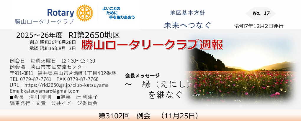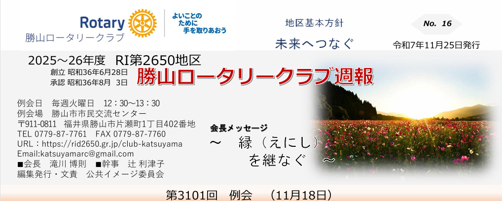 週報NO.16 第3101回例会 福井大学医学部