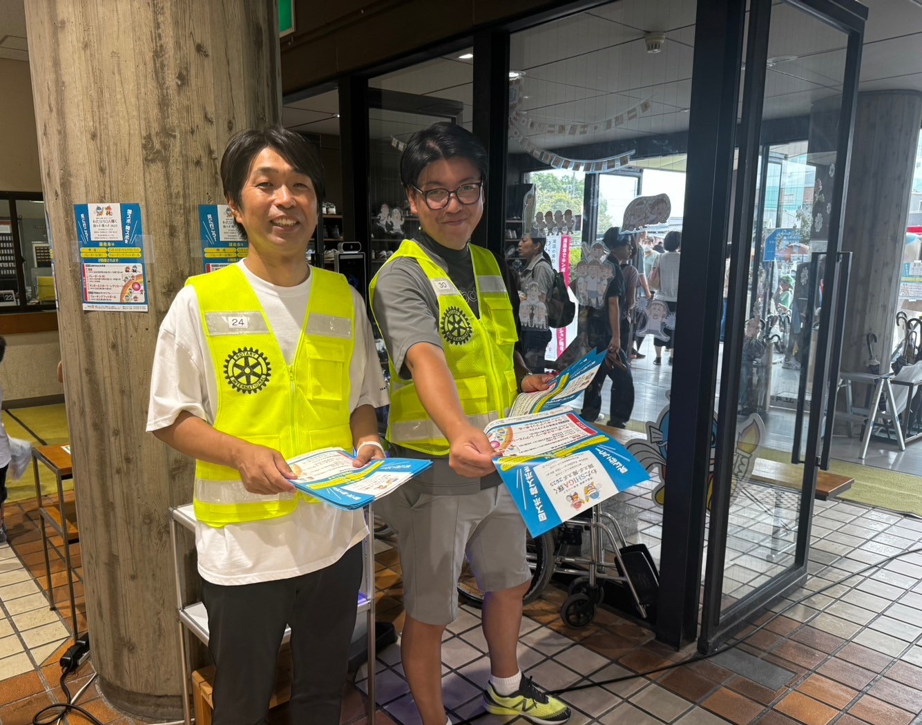 そこで、湖南ロータリークラブでは「わたSHIGA輝く国スポ・障スポ」のプレイベントとして市民の皆様に周知していただけるよう、来場者にチラシをお配りし来年湖南市内で開催される国スポ障スポのPRを行いました。