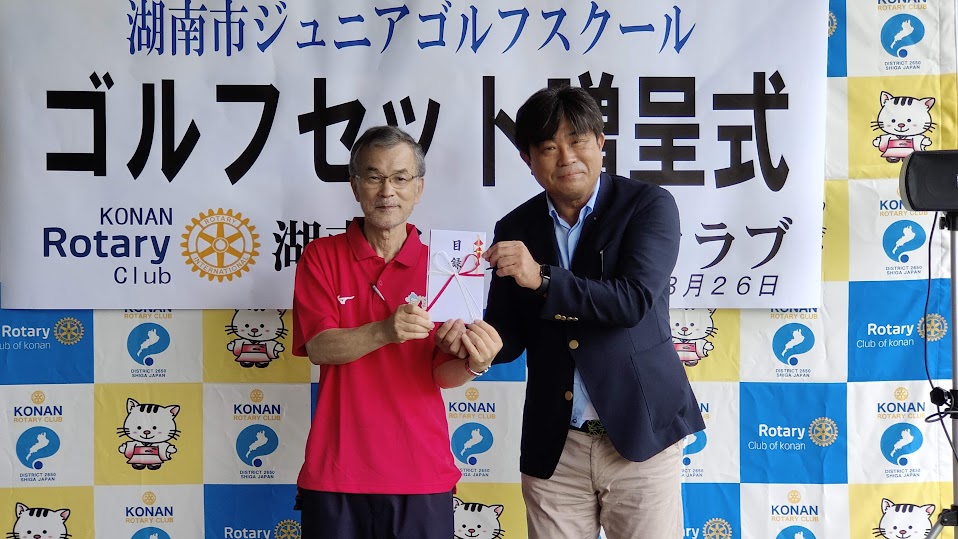 開会式では、生田市長にお越し頂きジュニアゴルフセット5セットの贈呈を行いました。