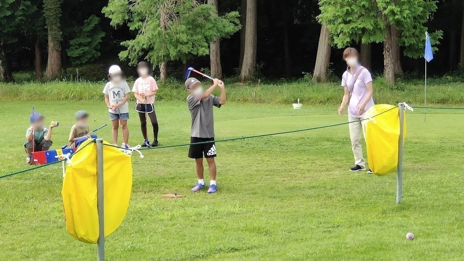 はじめてゴルフをする子どもたちもいましたが、クラブの持ち方や構え方を教えてもらい、器用にゴルフクラブを振っていました。