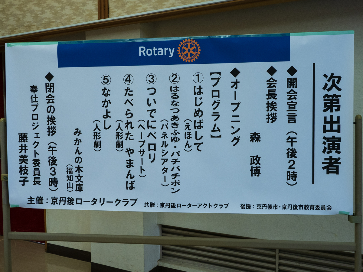 当クラブでは2005-06年より子ども達、地域への貢献活動として「おはなしフェスティバル」を京丹後市・京丹後市教育委員会後援の元開催しています。