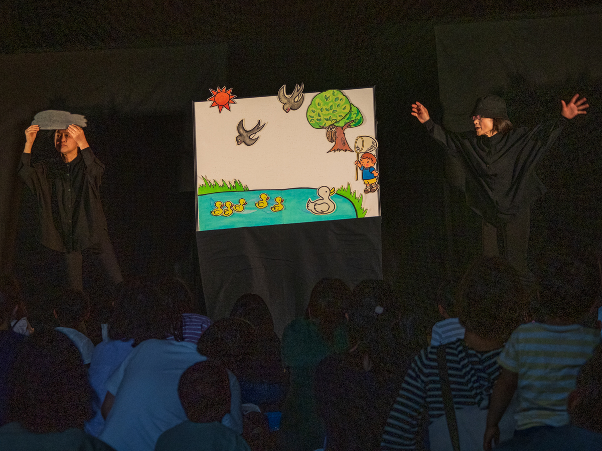 巧みな演出の読み聞かせ、大型紙芝居、人形劇に思わず食いつく子ども達、親御さん