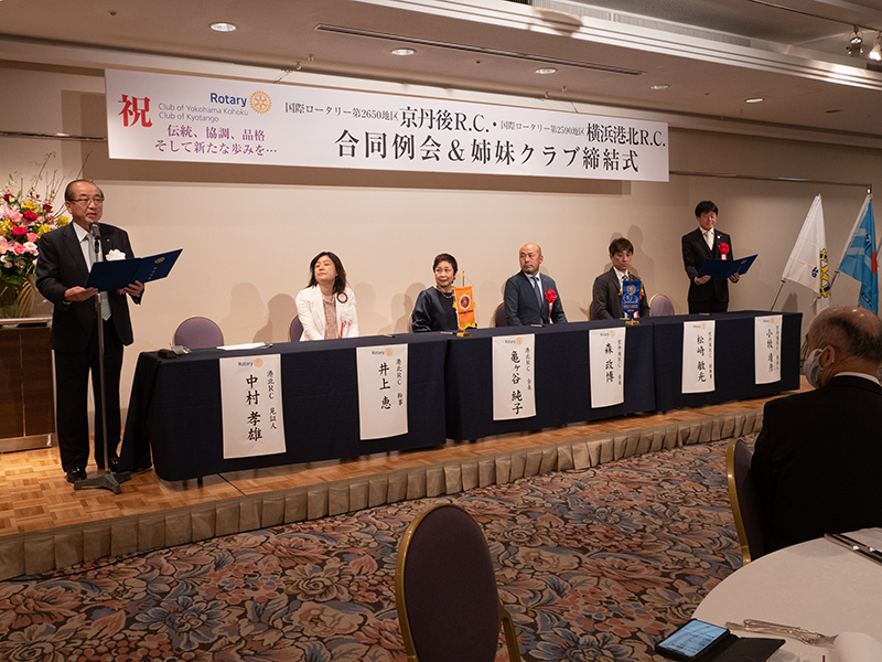 横浜港北RC中村見証人による姉妹クラブ細則の読み上げ