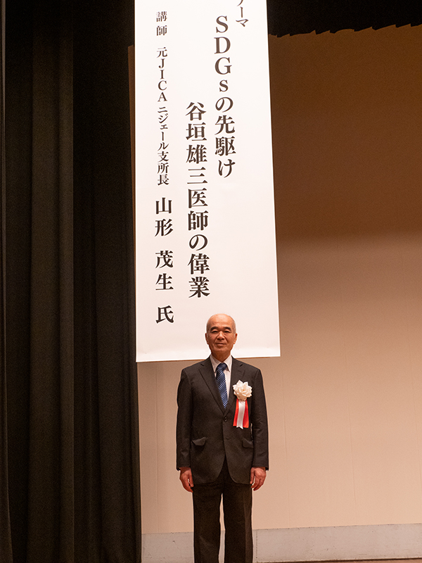 こうした一連の国際奉仕を実践された谷垣雄三氏のことを直接生の声で聴くことは大変貴重な機会であると考えます。谷垣医師と共に現地医療発展に寄与された元JICAニジェール支所長の山形茂生先生を講師に迎え、現地医療に携わるまでの経緯や現地での様々な出来事・経験をご講演頂きました。
