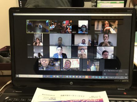 京都平安ロータリーでは新型コロナウィルス感染拡大防止として、オンラインミーティングに変更して例会を開催しています。