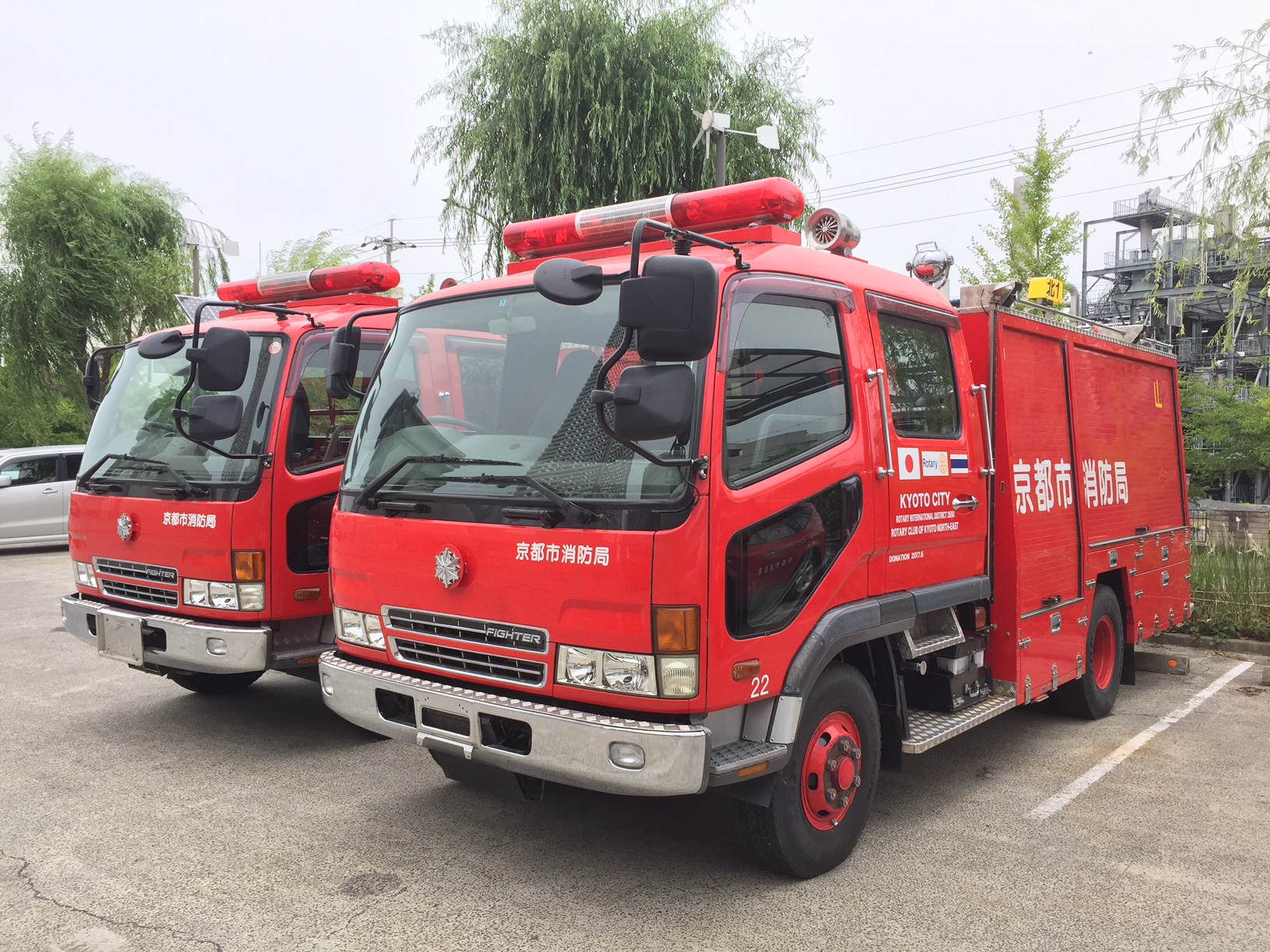 タイ・コーンケーン市(Khon Kaen)の悩みを聞いた京都北東ロータリークラブ(会長 西村泰明)は、京都市、京都市消防局に相談を行っていました。京都北東ロータリークラブの今回の国際奉仕活動に賛同いただいた京都市から、このたびコーンケーン市(タイ)に消防自動車が2台寄贈されることになりました。