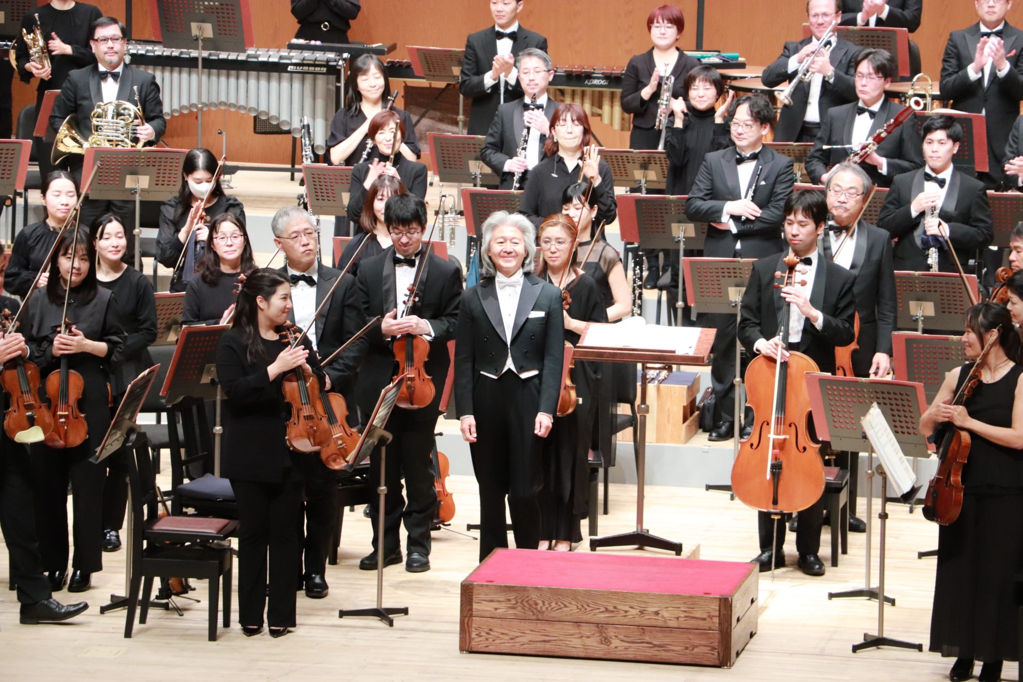 子供たちも一度は耳にしたことがあるポピュラーな楽曲を選択していただき、映画「ハリーポッター」の「ヘドウィグ のテーマ」で開幕しました。オッフェンバックの「天国と地獄」、ドヴォルザークの交響曲第9番「新世界より」、チャイコフスキーの「花のワルツ」など計11曲を響かせ演奏していただきました。このフルオーケストラが奏でる楽曲毎にワクワクしながらも素晴らしい音色に心が揺られ安寧の夢心地、ご参加の皆様にはとても優雅なひと時を過ごしていただきました。また、コンサート中盤においては、大友直人氏自らマイクを手に取り、楽器の説明やコンサート会場でのマナーなどを指導いただきました。演者に対し、観客から送る盛大な拍手が、演者の喜びに繋がること、そのコミュニケーションにより、オーケストラ全体がより一体感のある素晴らしいものに変化することを子供たちが学ぶ機会となりました。また、アンコールでは、ロータリーソングの「手に手つないで」のフルオーケストラバージョンを演奏いただき、ロータリー活動の広報にもつながりました。