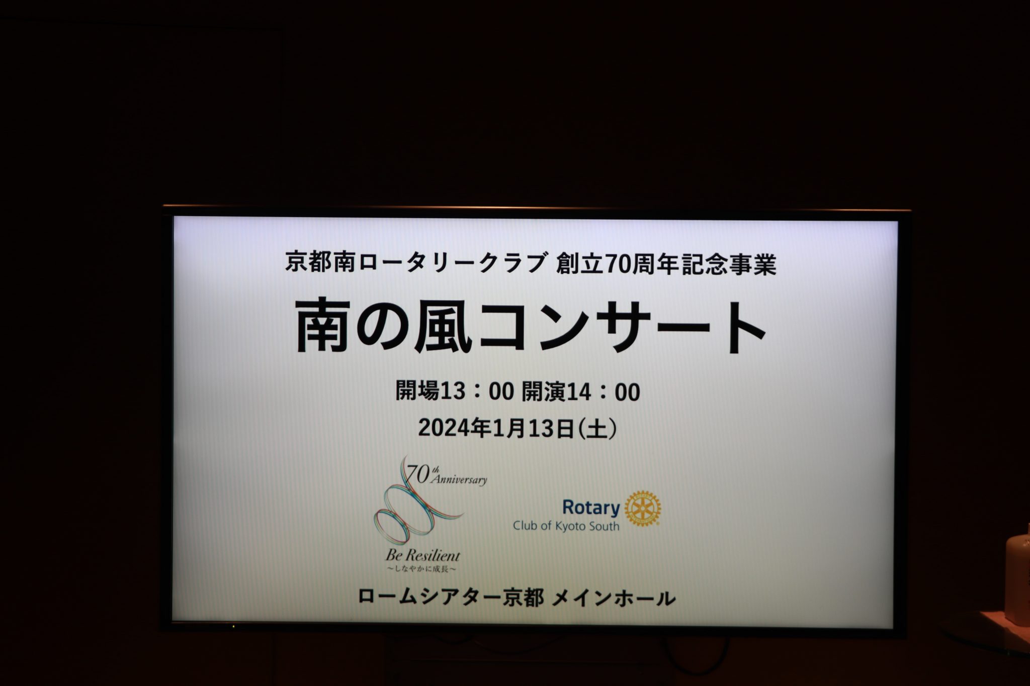 京都南ロータリークラブ創立70周年を記念して、京都南ロータリークラブの主催により、2024年1月13日(土)にロームシアター京都において開催された「南の風コンサート」について、申請いたします。