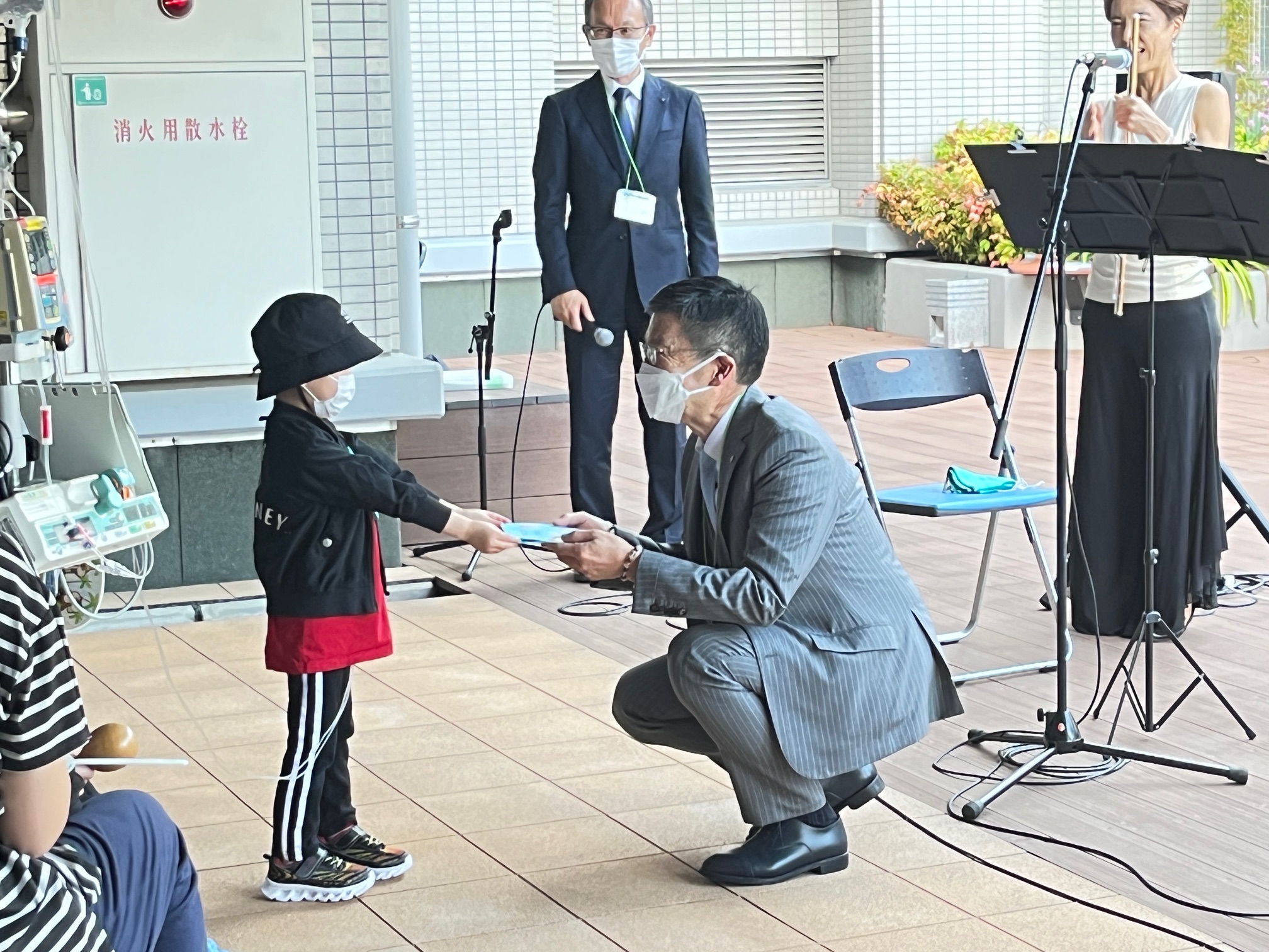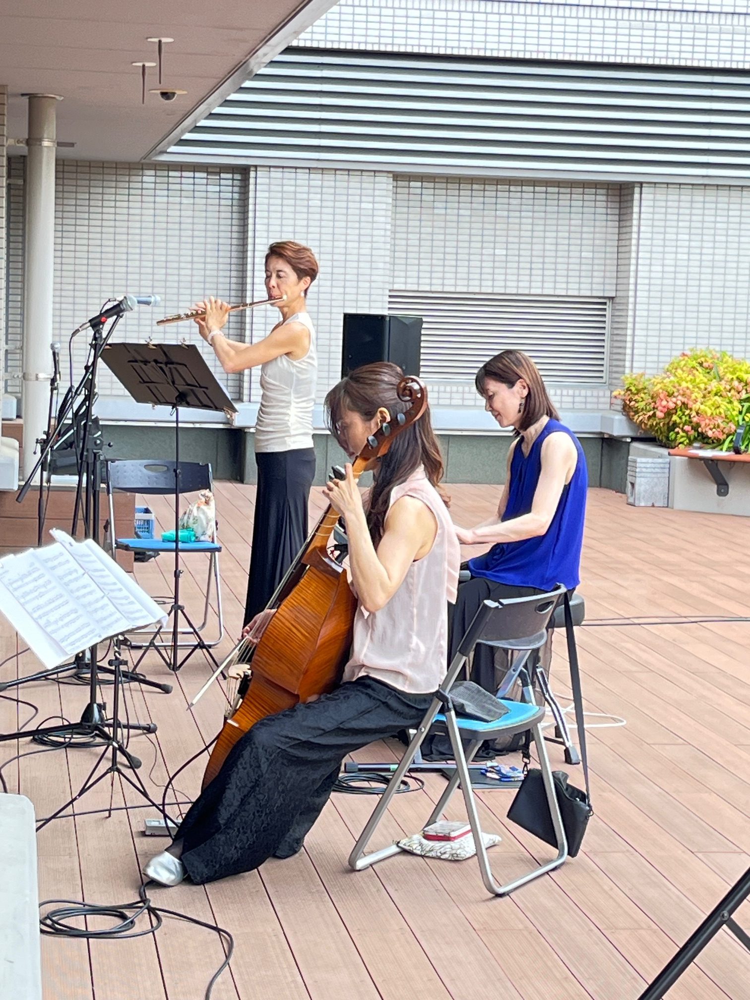 【初夏の癒しコンサート】5月22日には患児とご家族に、ほんのひと時、心の癒しを感じていただければと、小児医療センター 屋外テラスピロティーにて「Le Collage」さんによるミニコンサートで素敵な演奏をお届けしました。久しぶりに外の空気に触れ、季節を感じられた方も多かったようです。