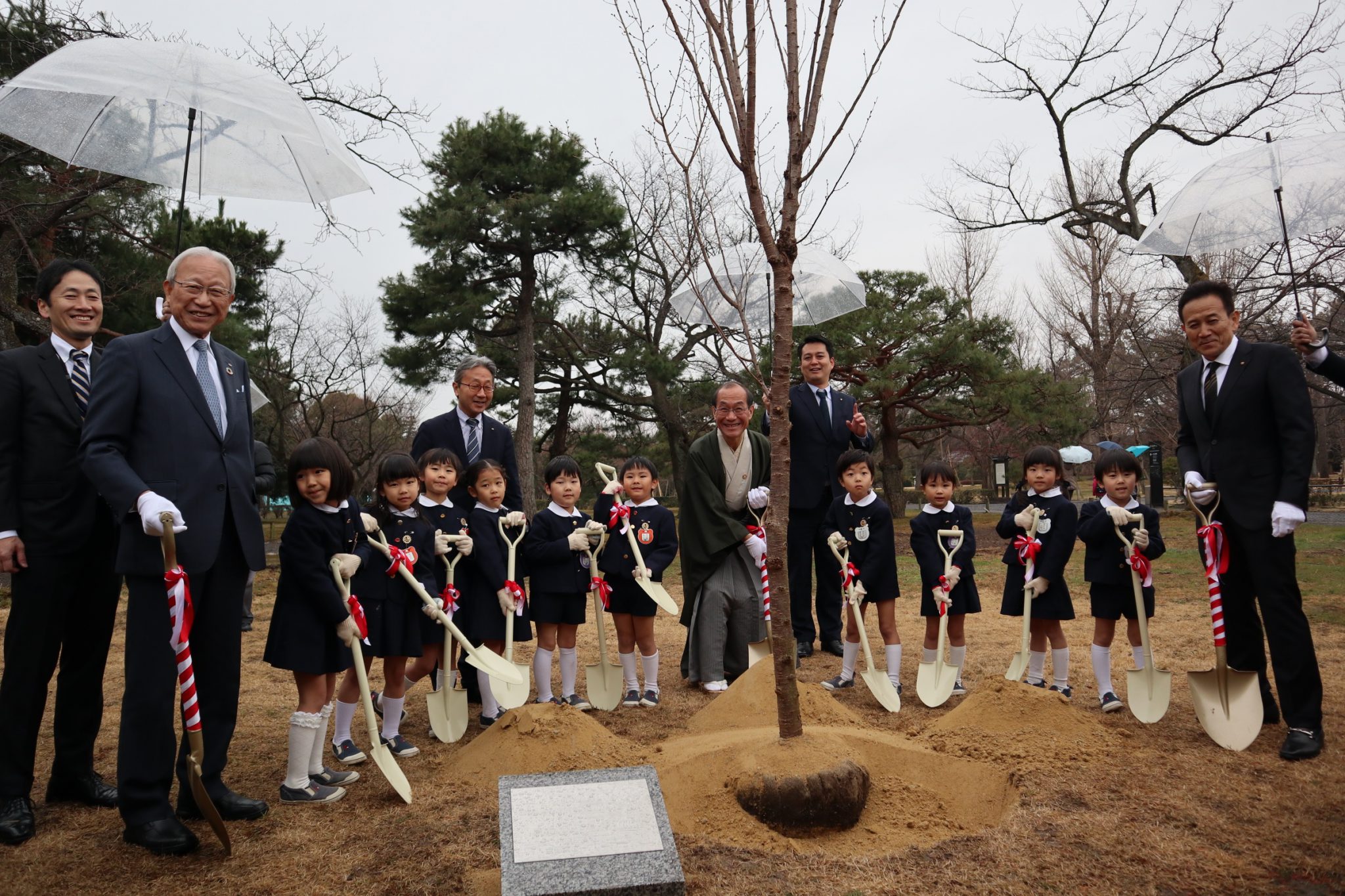 昨年に引き続き、京都南ロータリークラブでは、二条城に桜の植樹を実施いたしました。今年は、創立65周年記念事業の一環として、3月3日(日)に門川京都市長にもご出席いただき、地元のひまわり幼稚園児と一緒に、桜とモミジの木を20本植樹いたしました。