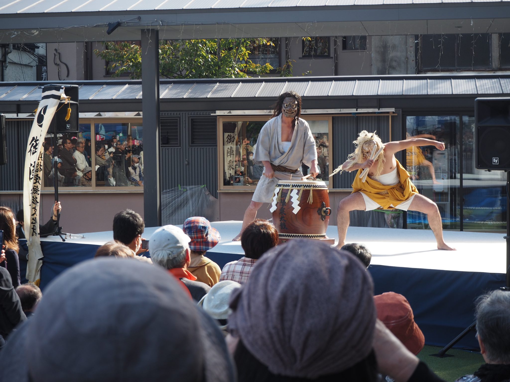 大迫力で聴衆を引き付けた石川県無形文化財の御陣乗太鼓の演奏。