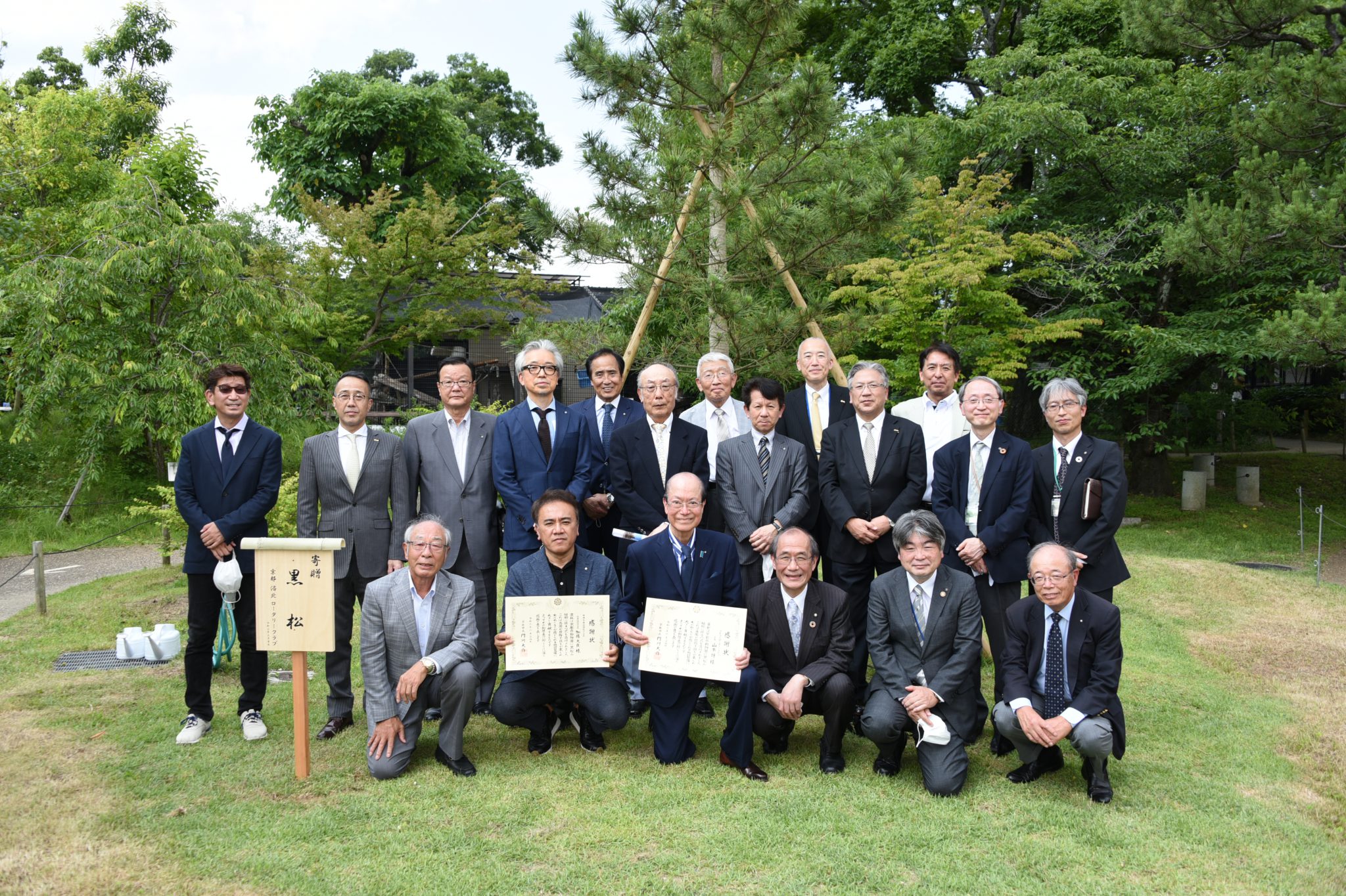 活動報告ACTIVITES REPORTS 京都市動物園にて植樹式 2021.07.6 6月24日(木)最終例会終了後、京都市動物園の京都の森において、昨年枯れてしまった昭和天皇の御手植松(五葉松)の後継木として寄付をした「黒松」の寄付の式典を行い、門川京都市長と共に植樹式を行いました。