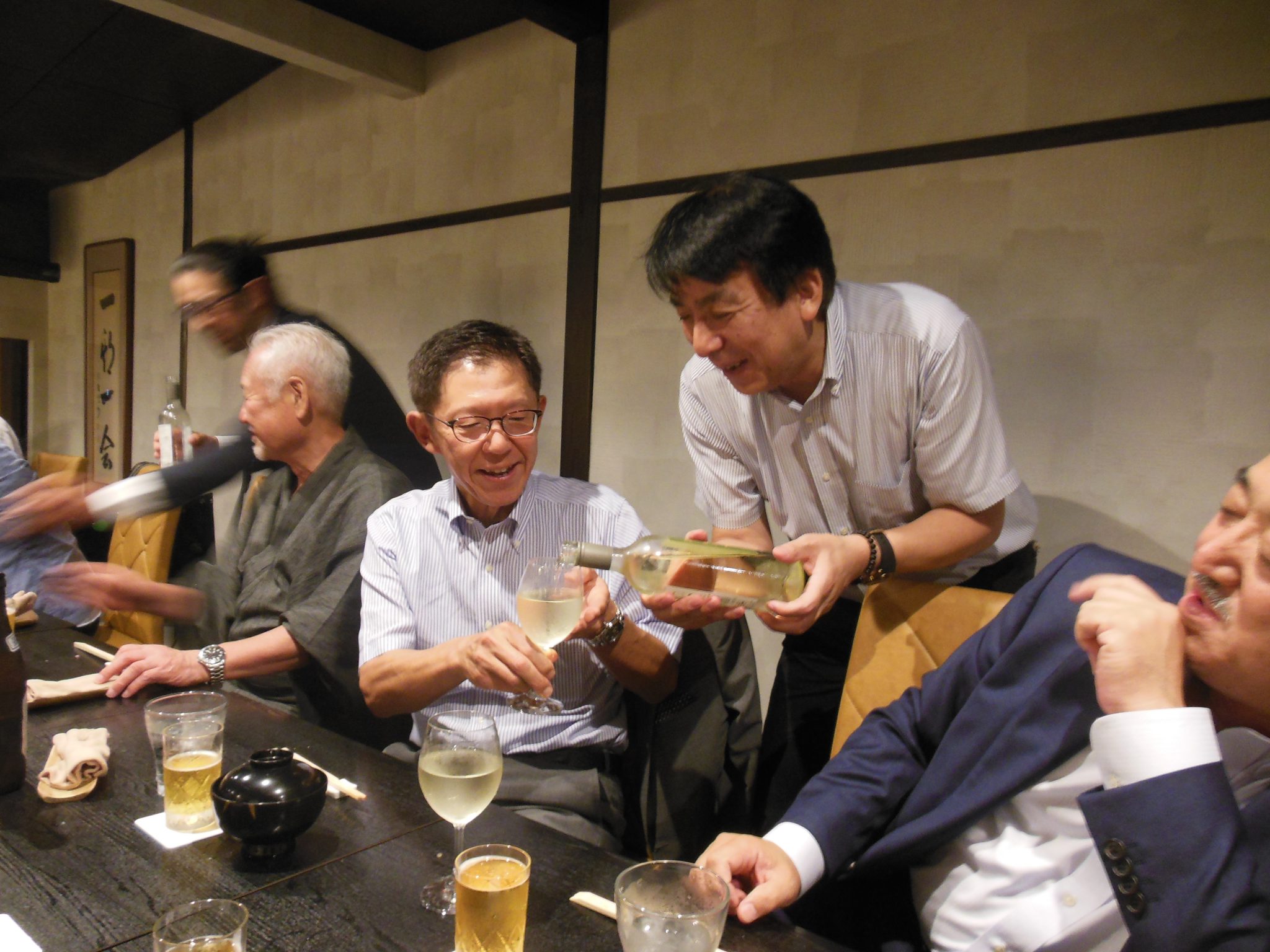 7月18日(木)18:30より「河久」にて、パスト会長会が開催され、10名のパスト幹事全員で、渡邉幹事団の慰労と若井幹事団の激励を行いました。