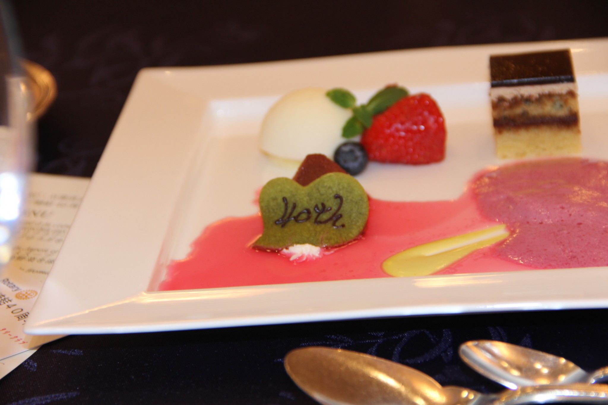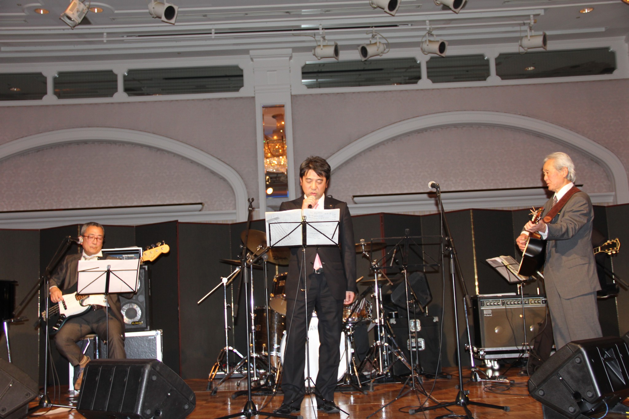 懇親会では、金沢北RCとの交流の歴史・写真を見ながら、40年を振り返り話に花が咲きました。また、京都ホテルオークラの御厚意で「40th」と書かれたデザートが供されました。アトラクションは、森・田附・渡邉会員の率いる8pmの伴奏に合わせ、後藤会長、広崎会員や会員夫人が熱唱。また金沢北RCの吉井会員の素敵な低音の歌声、新婚ほやほやの中川幹事の奥様への甘い歌声が、会場を大いに盛り上げました。