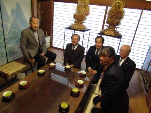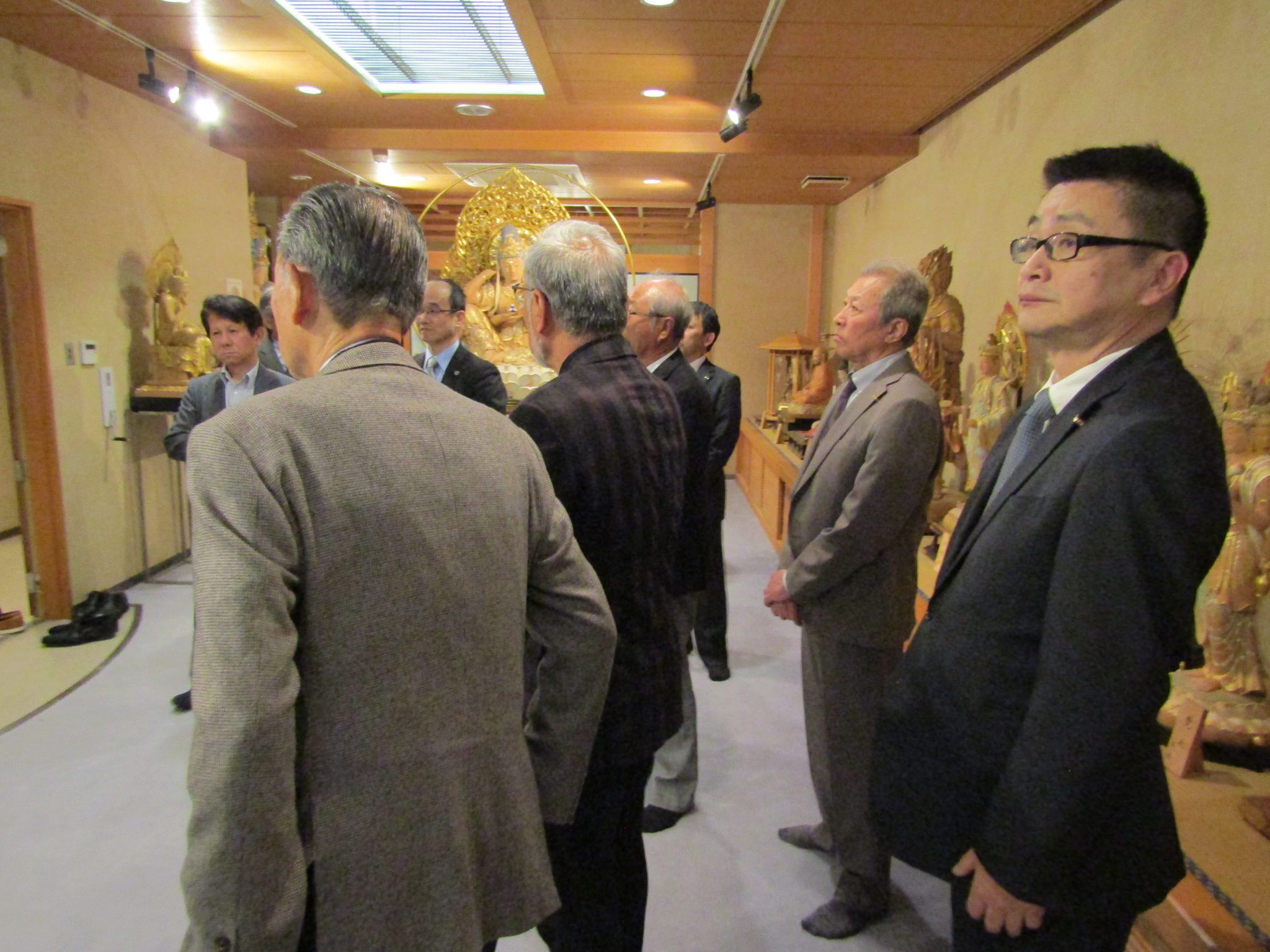 会員15名が参加し、5階の収蔵庫の数十体の仏像(宗琳、佳遊、靖朋作)を鑑賞後、松久靖朋先生に、仏像の制作や歴史についての解説いただき、2階の仏像制作の作業場の見学と解説、その後活発な質問が続き、予定時間をすぎてしまいました。