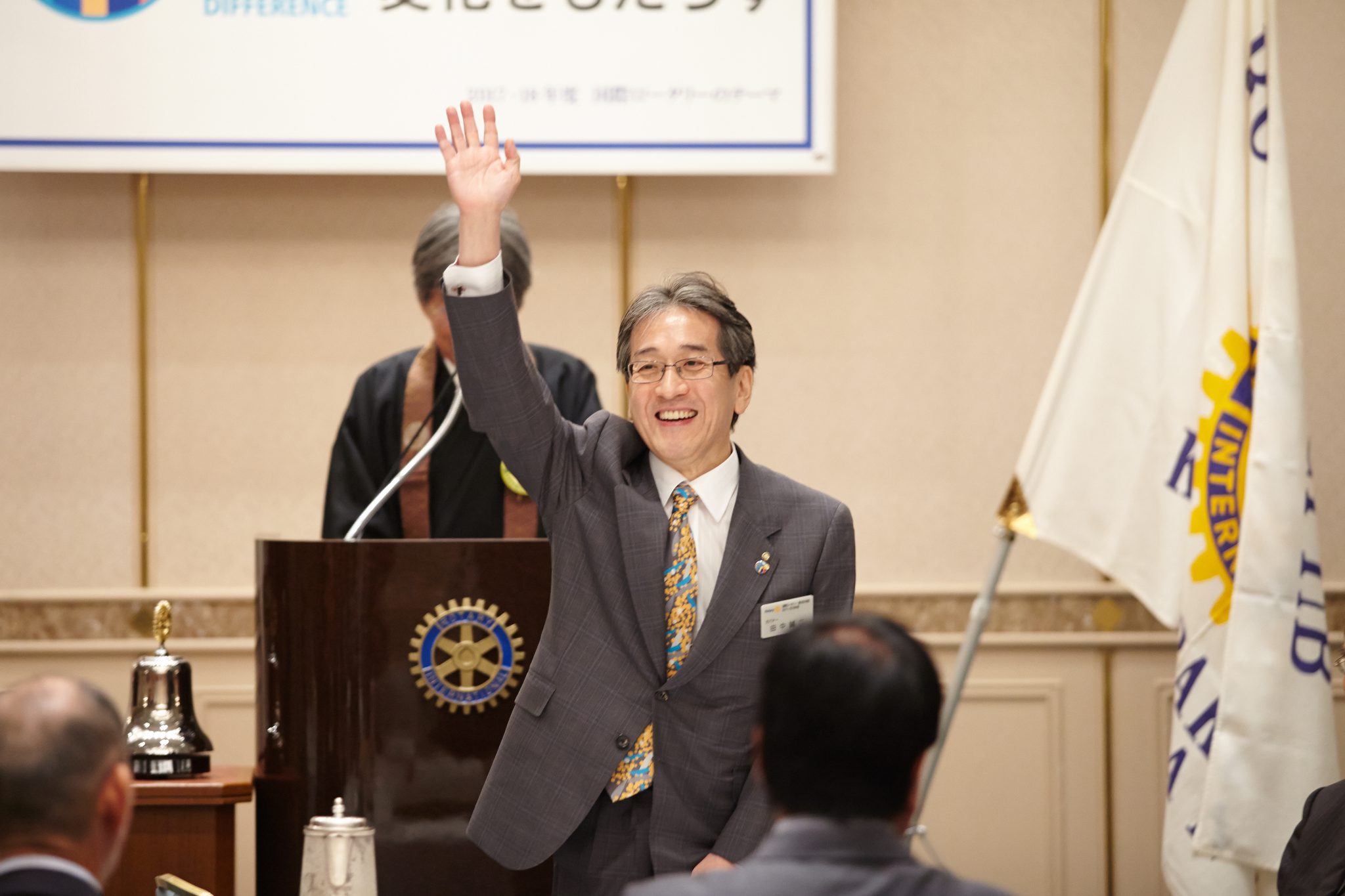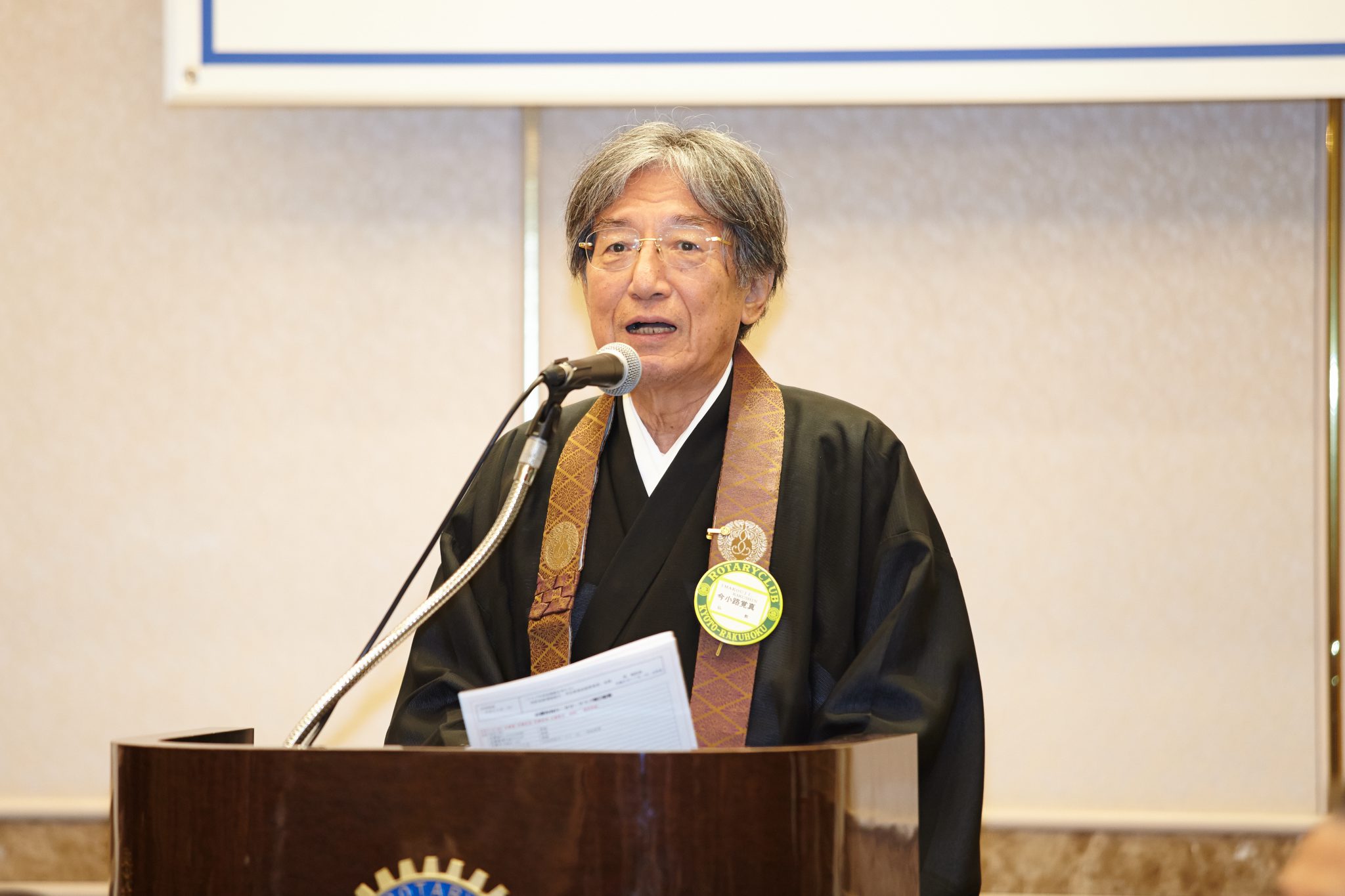 8月10日(木)京都ホテルオークラにて、田中誠二ガバナーの公式訪問(京都北東RCと合同)が行われました。当日の例会では、五十嵐義之会員の入会式が行われ、田中誠二ガバナーより会員章が五十嵐会員の胸につけられました。
