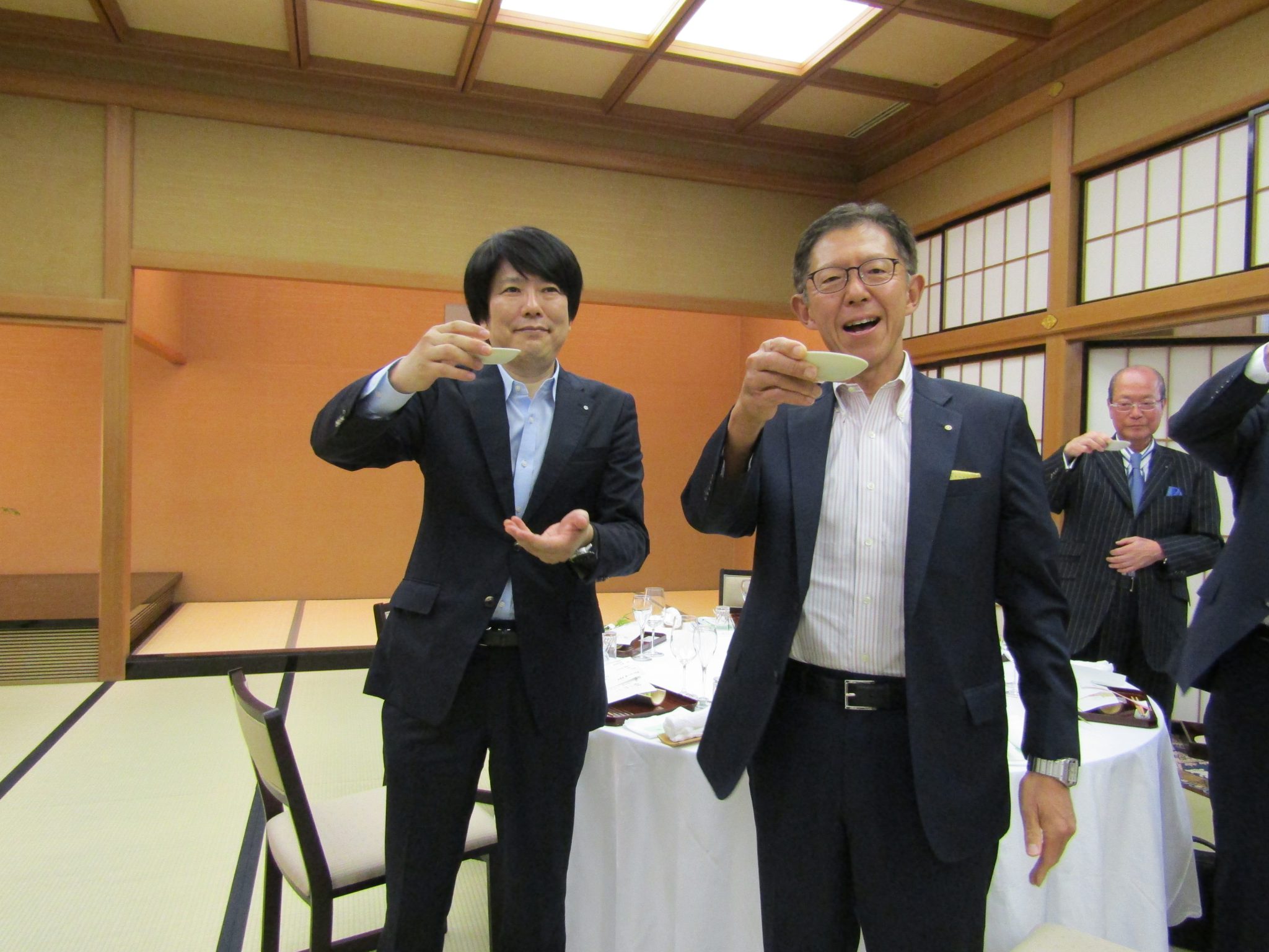 夕刻18:30よりは「竹茂楼」において、安保年度理事会メンバーの慰労と田附年度理事会メンバーの激励のため、新旧理事役員懇親会が開催されました。