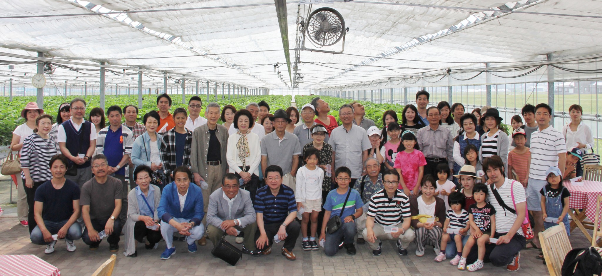 5月15日(日)、葵祭の京都を離れ、滋賀県野洲市にある南出会員の農園にイチゴ狩りに行きました。会員家族総勢62名が参加。30分のイチゴ狩りで、最後まで食べていたのは子供達で、大半は10分くらいイチゴ狩りを楽しみ、そのあとゆっくり腰掛けて甘いイチゴを味わっていました。その後、北村会員の事業所「+CASA」のカフェで食事をとり、おしゃれなお店を散策して、解散となりました。