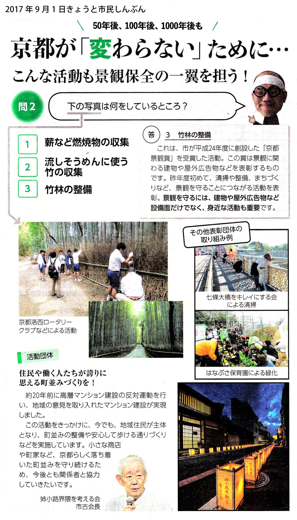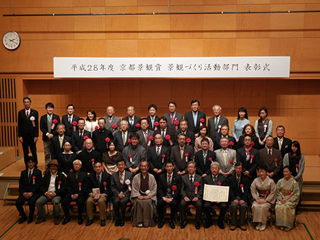 昨年9月24日に行いました小倉山特別保存地区竹穂垣補修改善活動が平成28年度京都景観賞優秀賞を受賞いたしました。3月12日ひとまち交流館で授賞式が行われ、会長幹事がクラブを代表して出席し、門川京都市長より表彰状を授与されました。