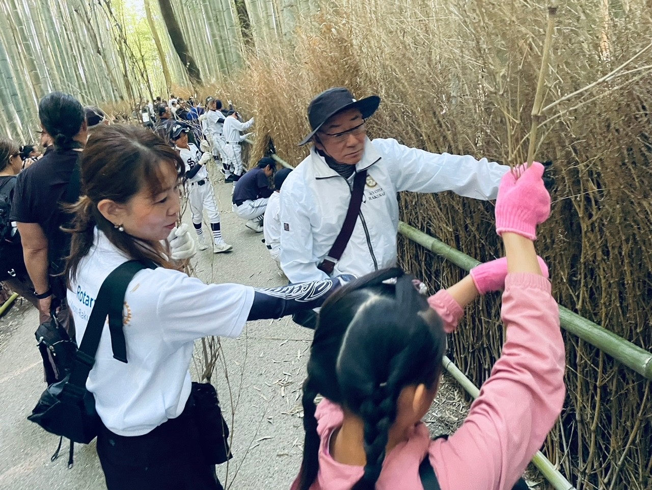 また、嵯峨中学より野球部の生徒さんと顧問の先生18名、花園大学の学生1名、小山名誉会員、米山奨学生の毛さん、京都洛西ローターアクトクラブの会員、会員家族を含め総勢68名での開催となりました。